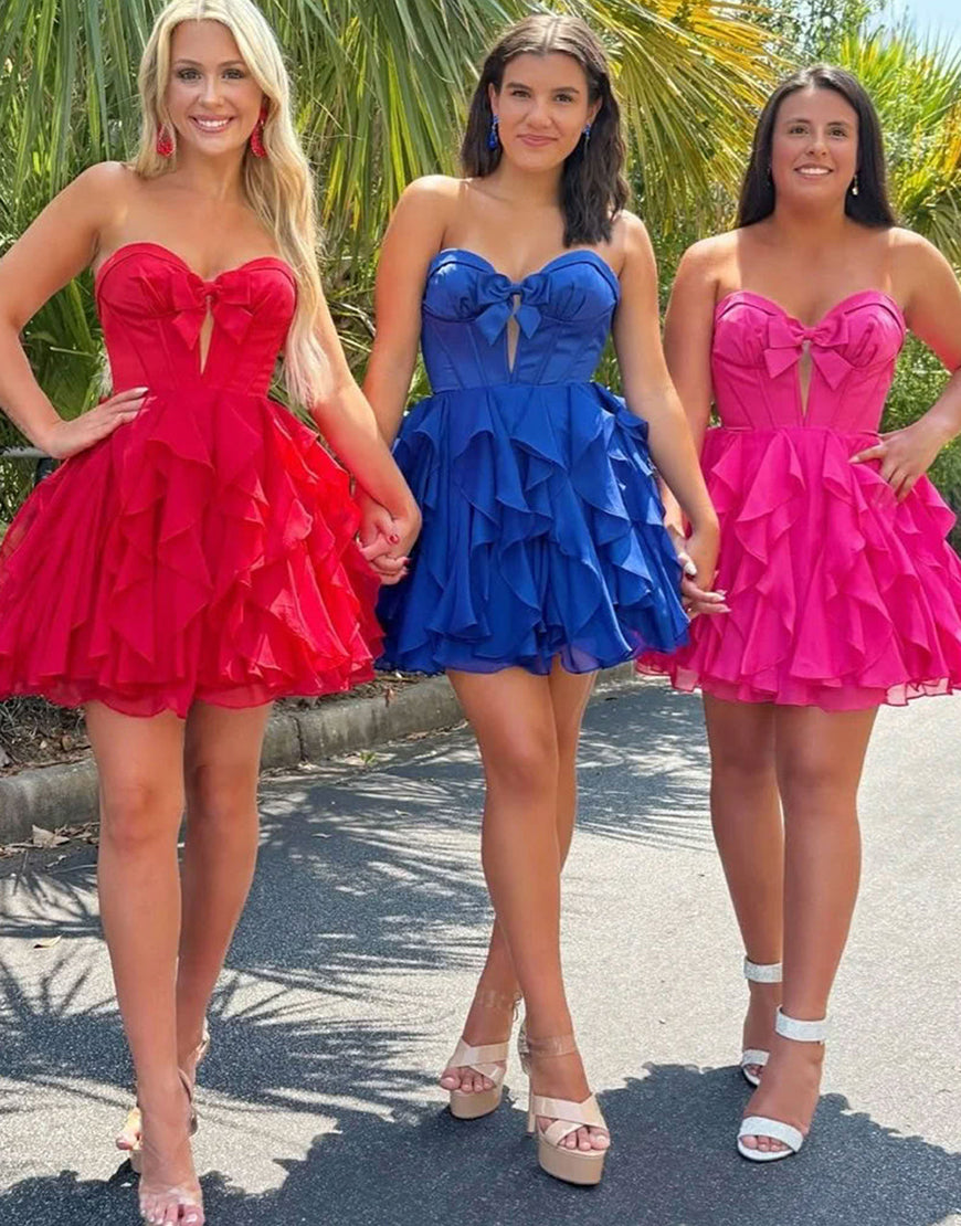 Fuchsia Ruffled A Line Corset Short Homecoming Dress with Bows
