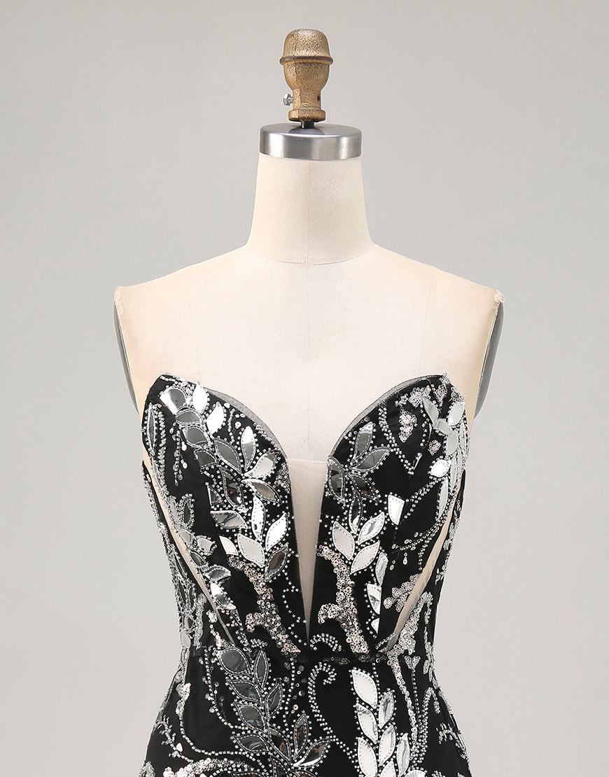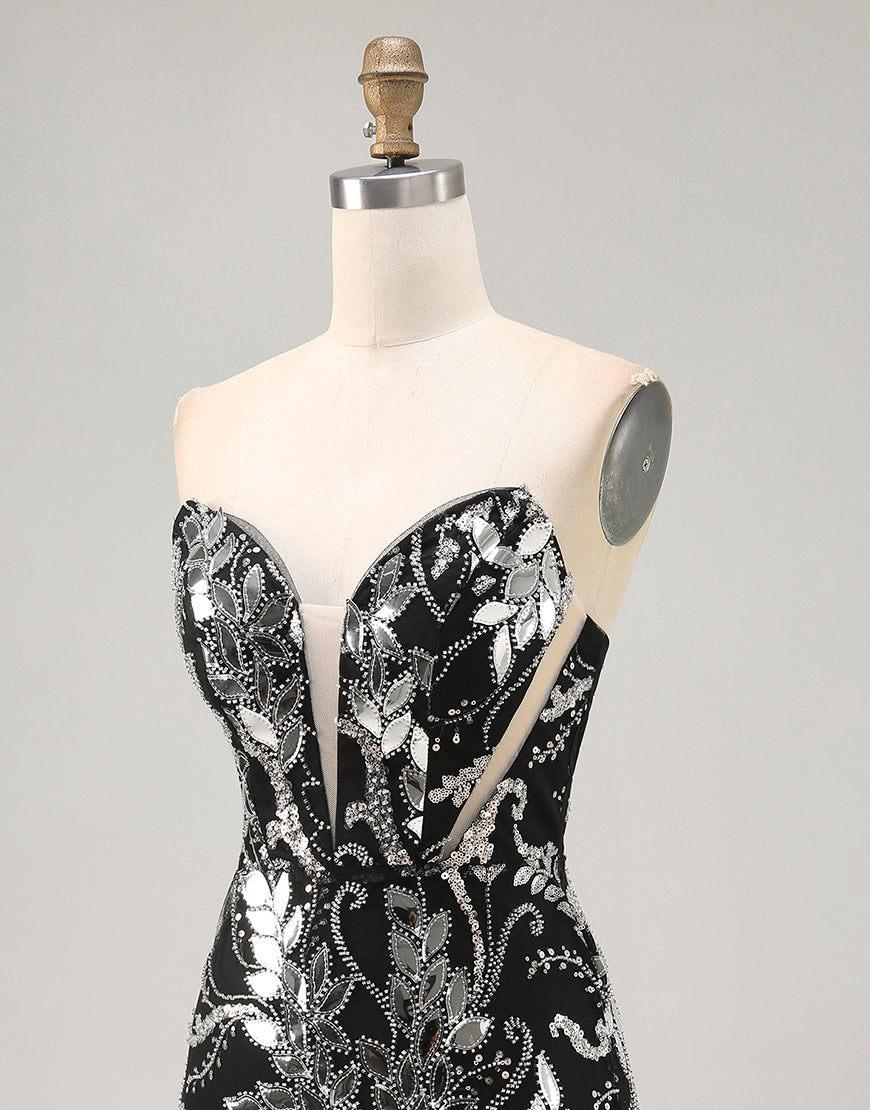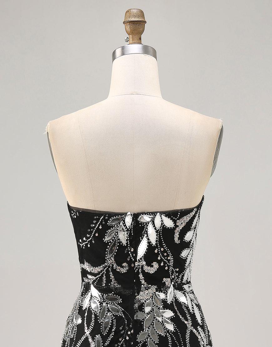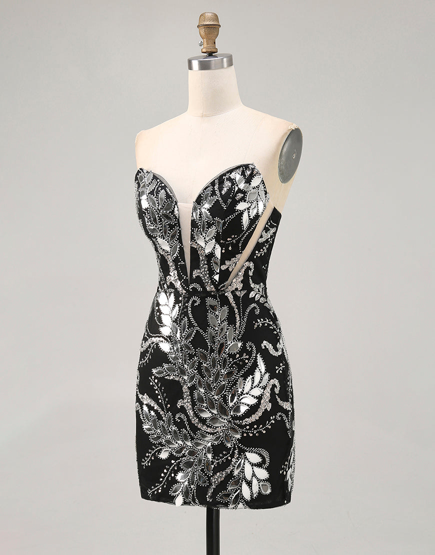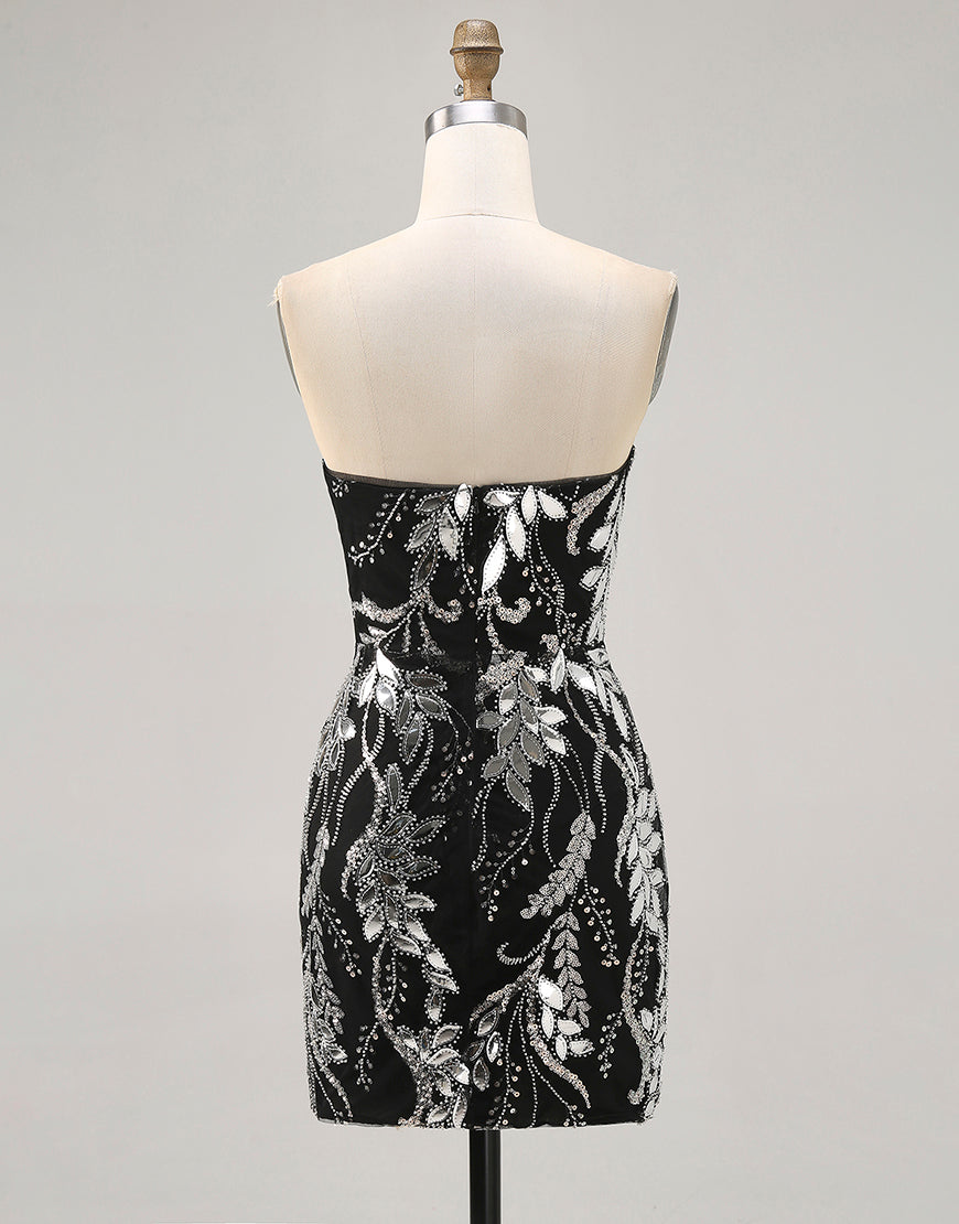 Sparkly Strapless Black Bodycon Short Homecoming Dress