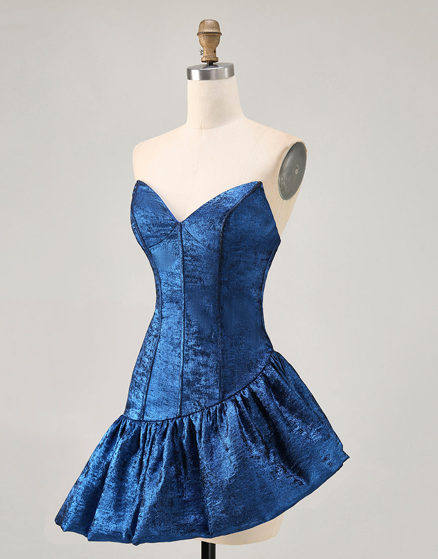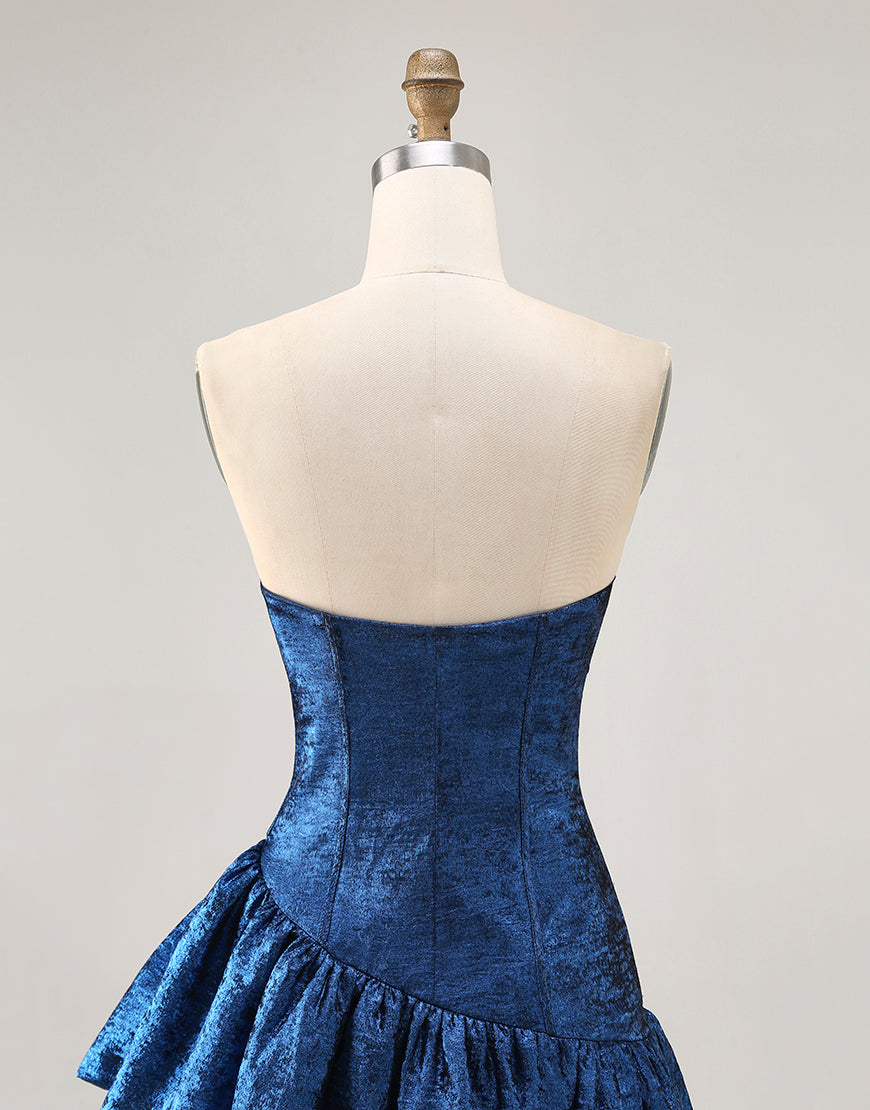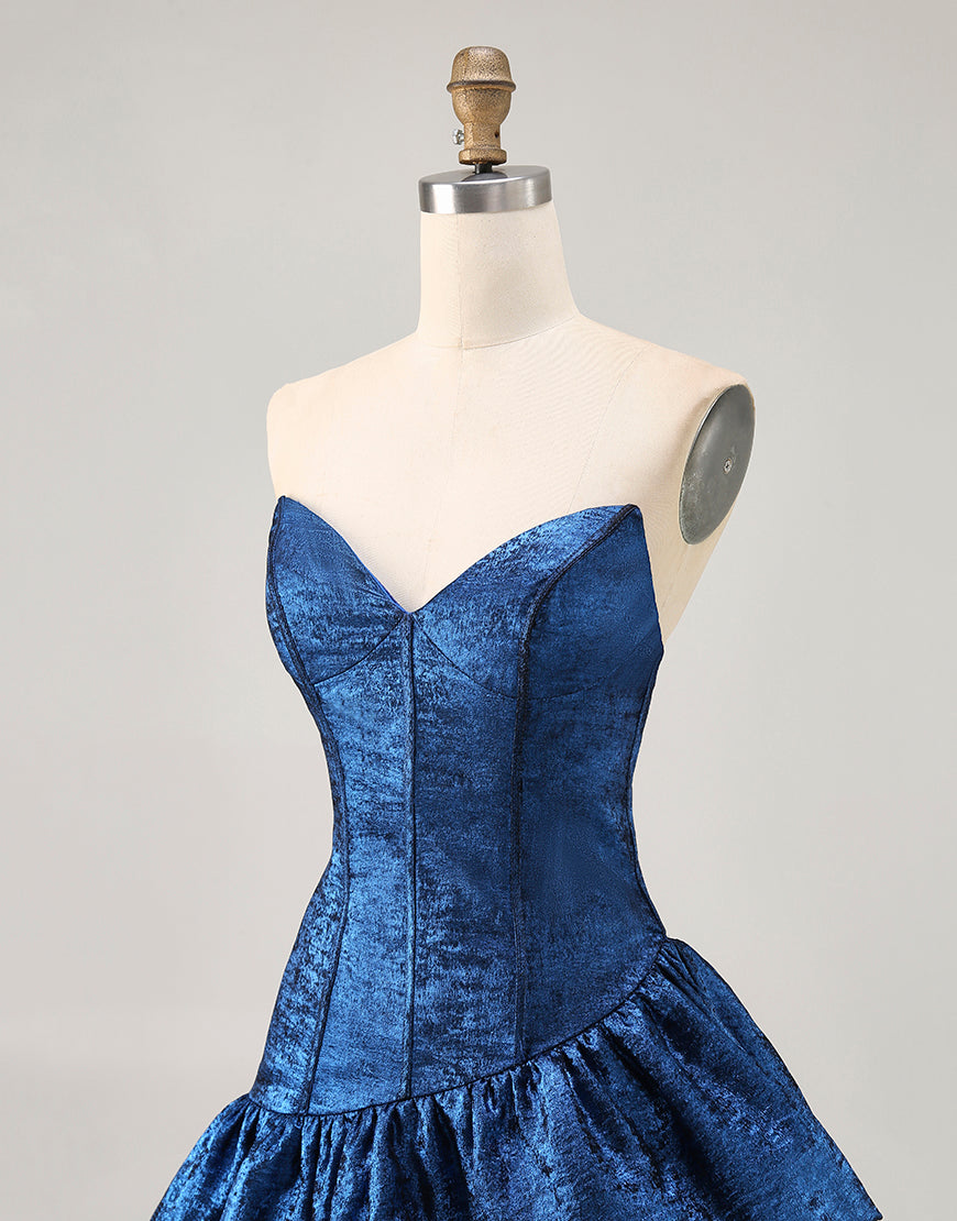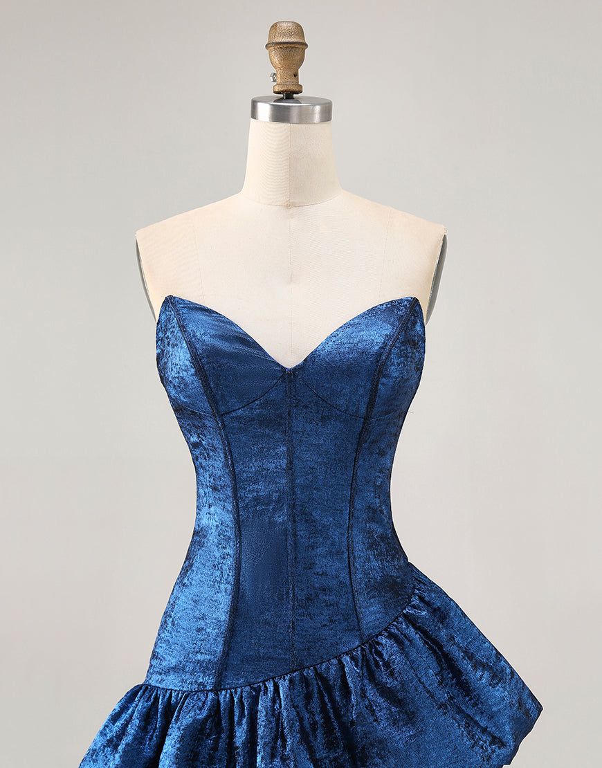 Dark Blue Corset A-Line Strapless Ruffle Homecoming Dress