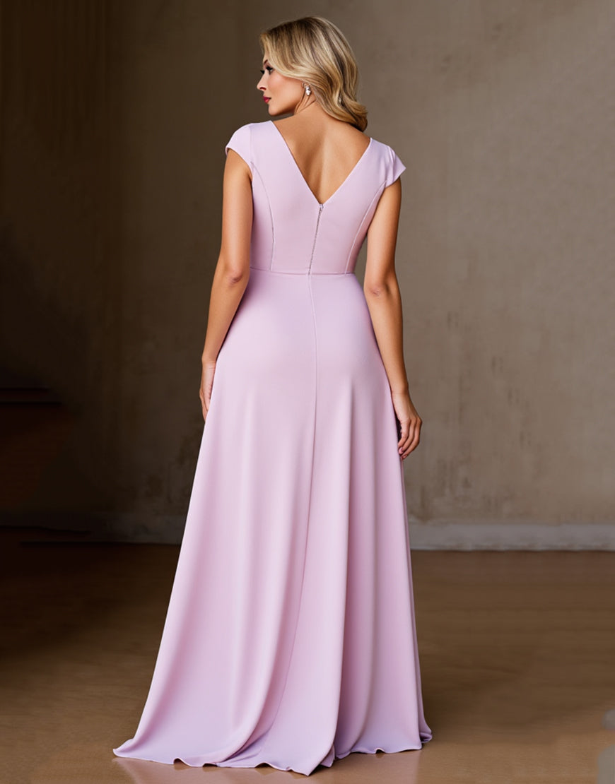 Chiffon Ruffled Candy Pink A Line Bridesmaid Dress with Slit
