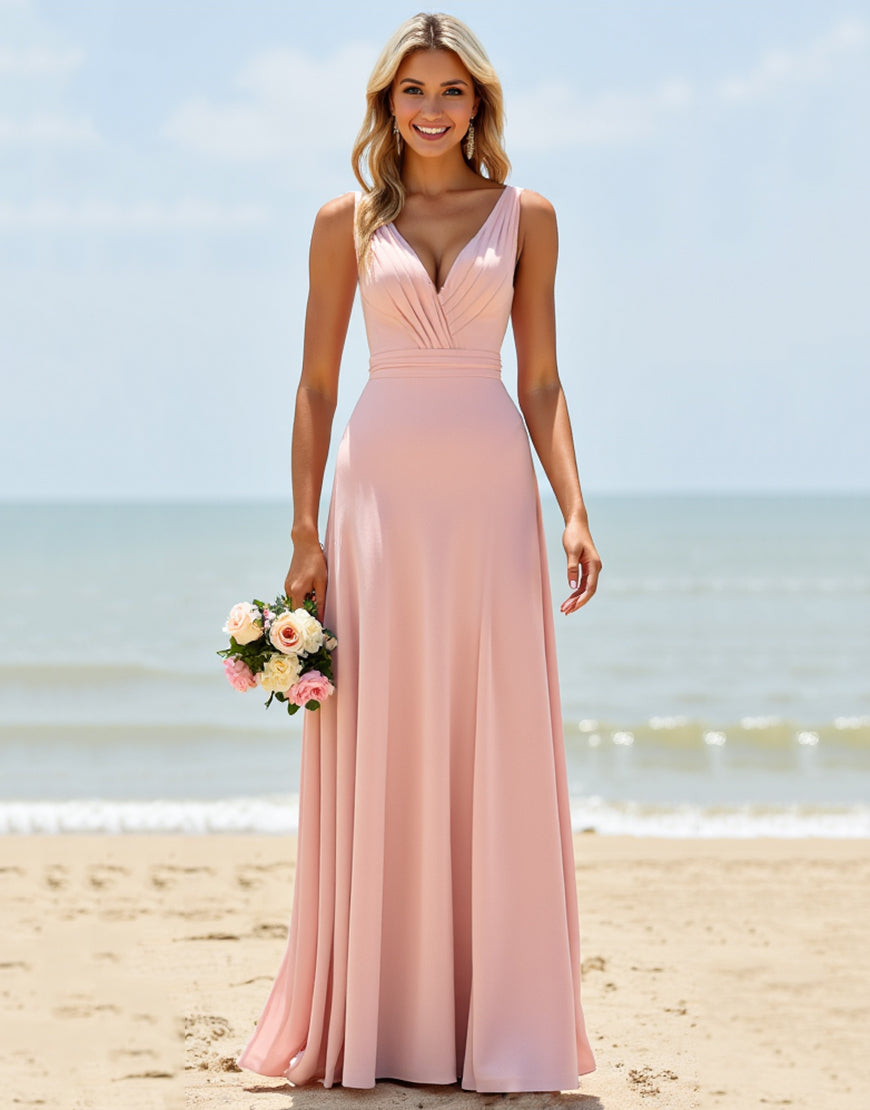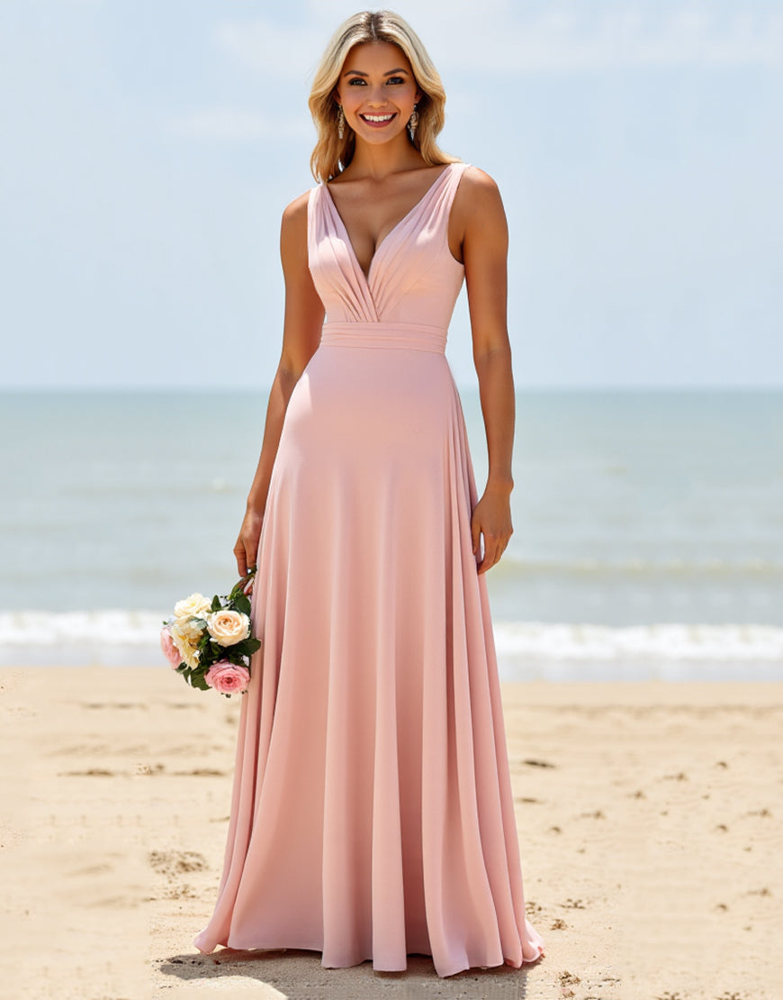 Chiffon V-Neck Blush A Line Bridesmaid Dress