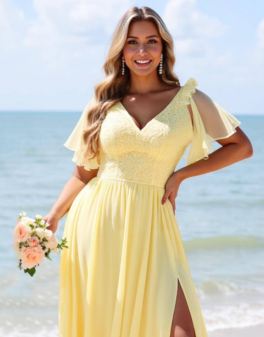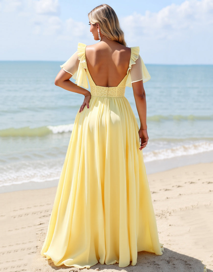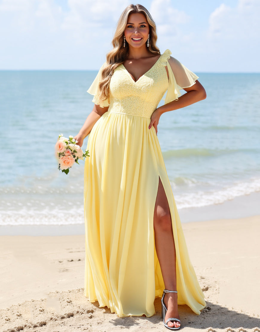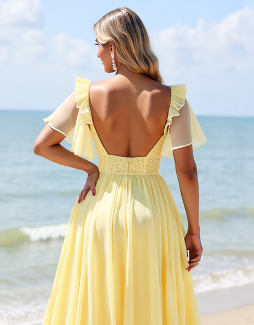 Yellow A Line Chiffon Appliqued Bridesmaid Dress