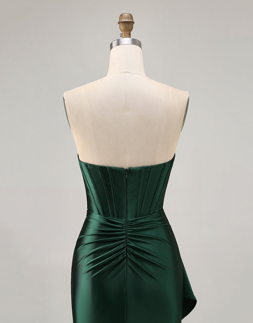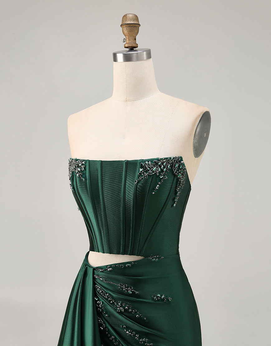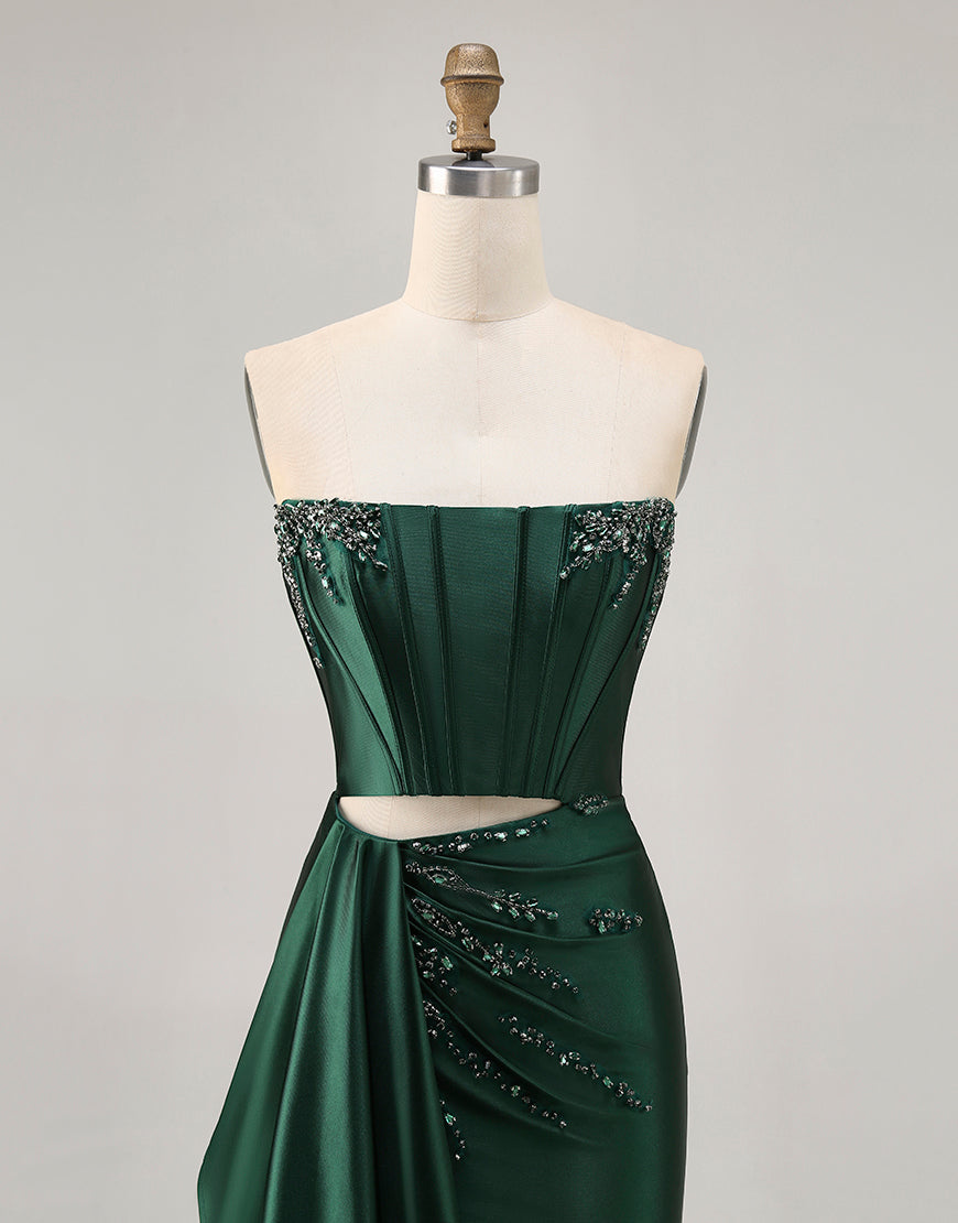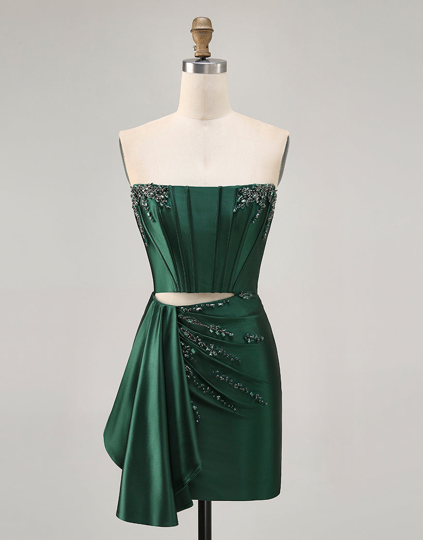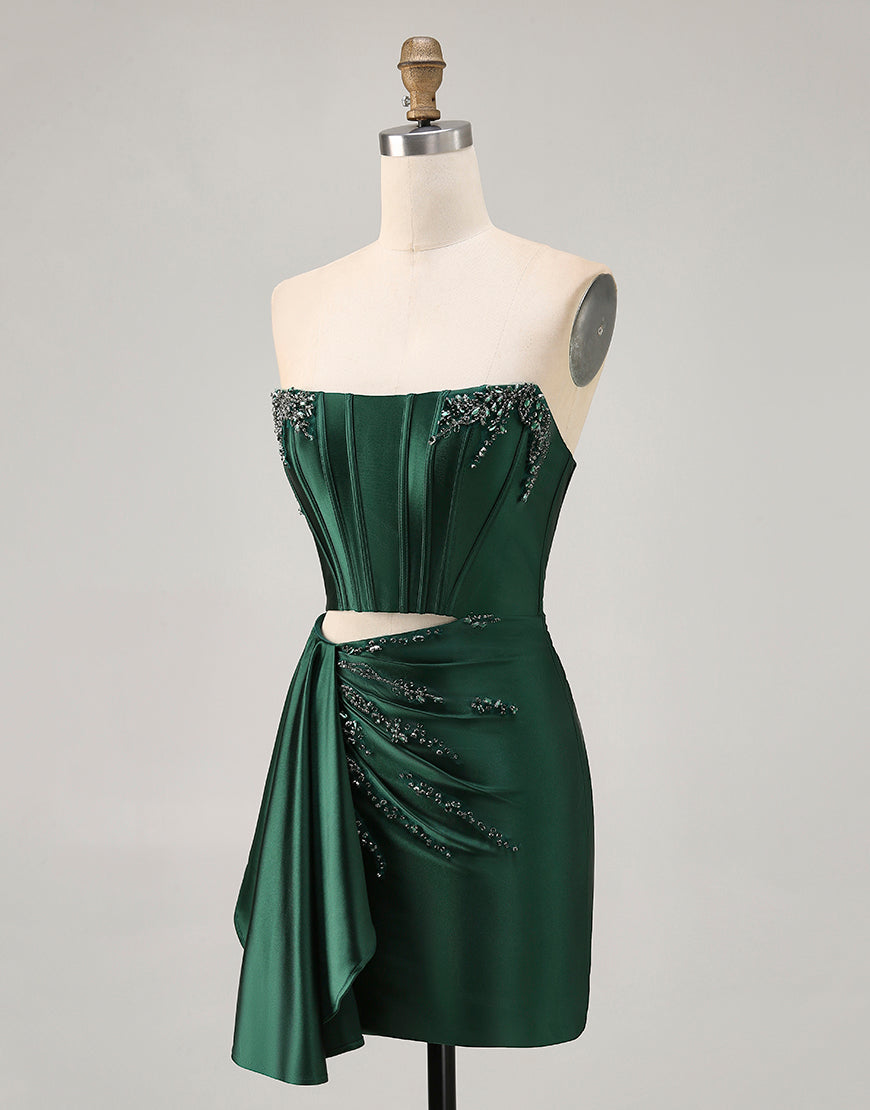 Dark Green Cut-Out Strapless Corset Homecoming Dress With Sash
