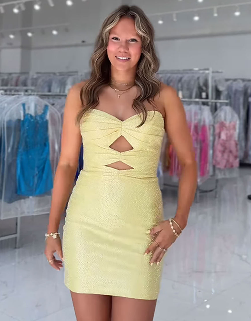 Sparkly Beaded Dark Green Cut Out Strapless Bodycon Short Homecoming Dress