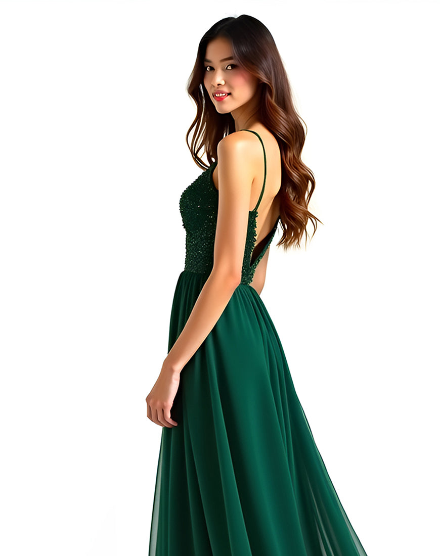 Dark Green A-Line Spaghetti Straps V-Neck Sequins Formal Dress with Split