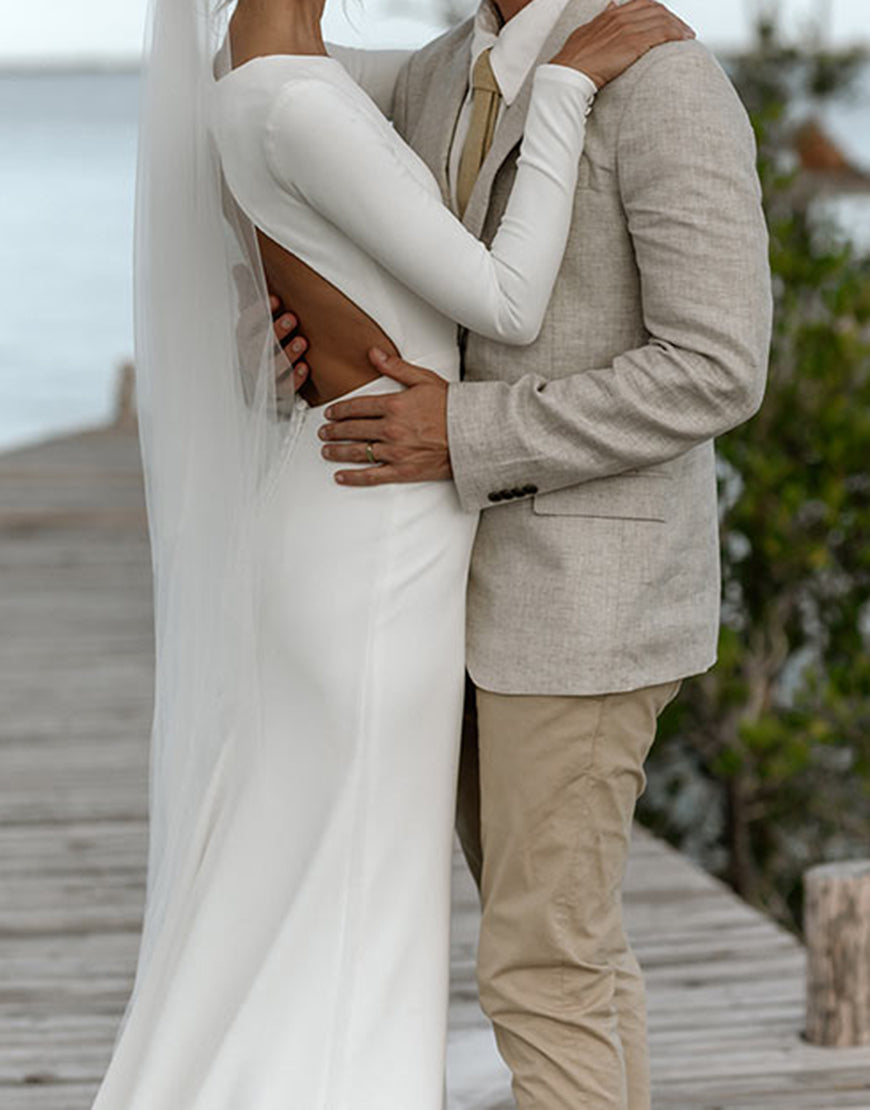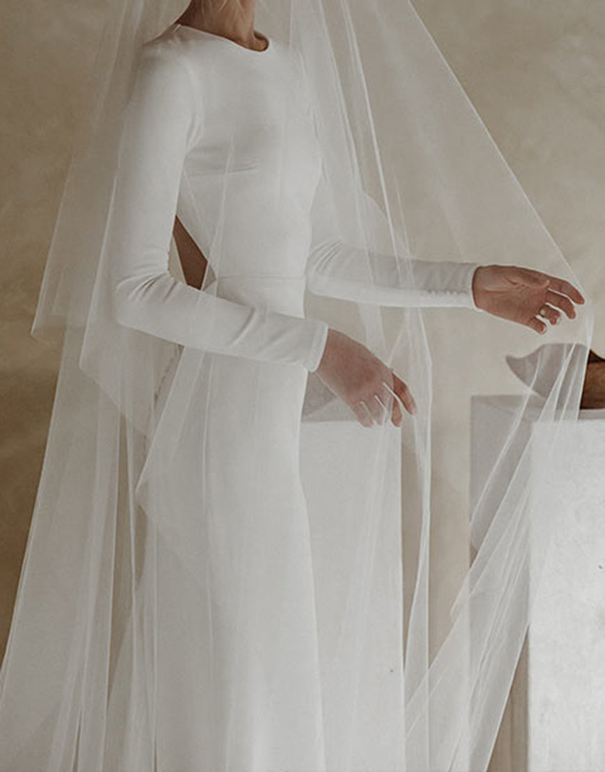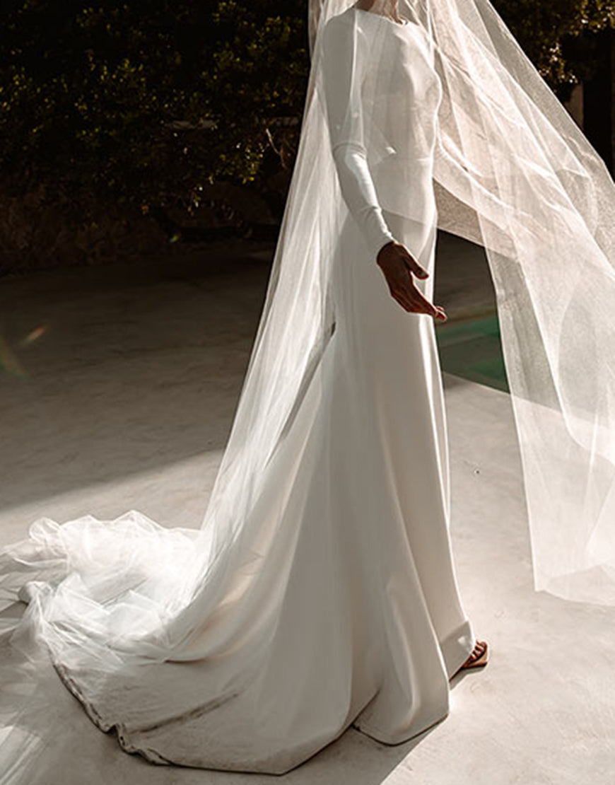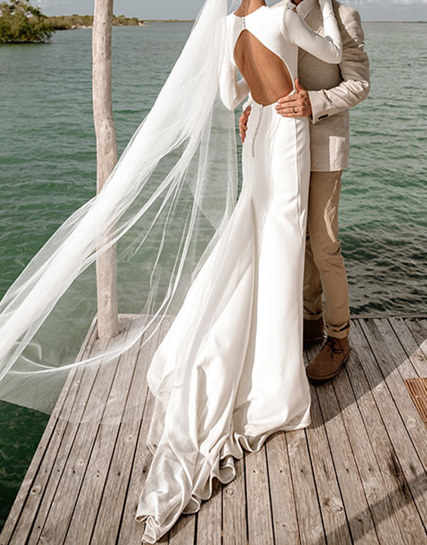 Long Sleeve Open Back Round Neck Ivory Mermaid Wedding Dress