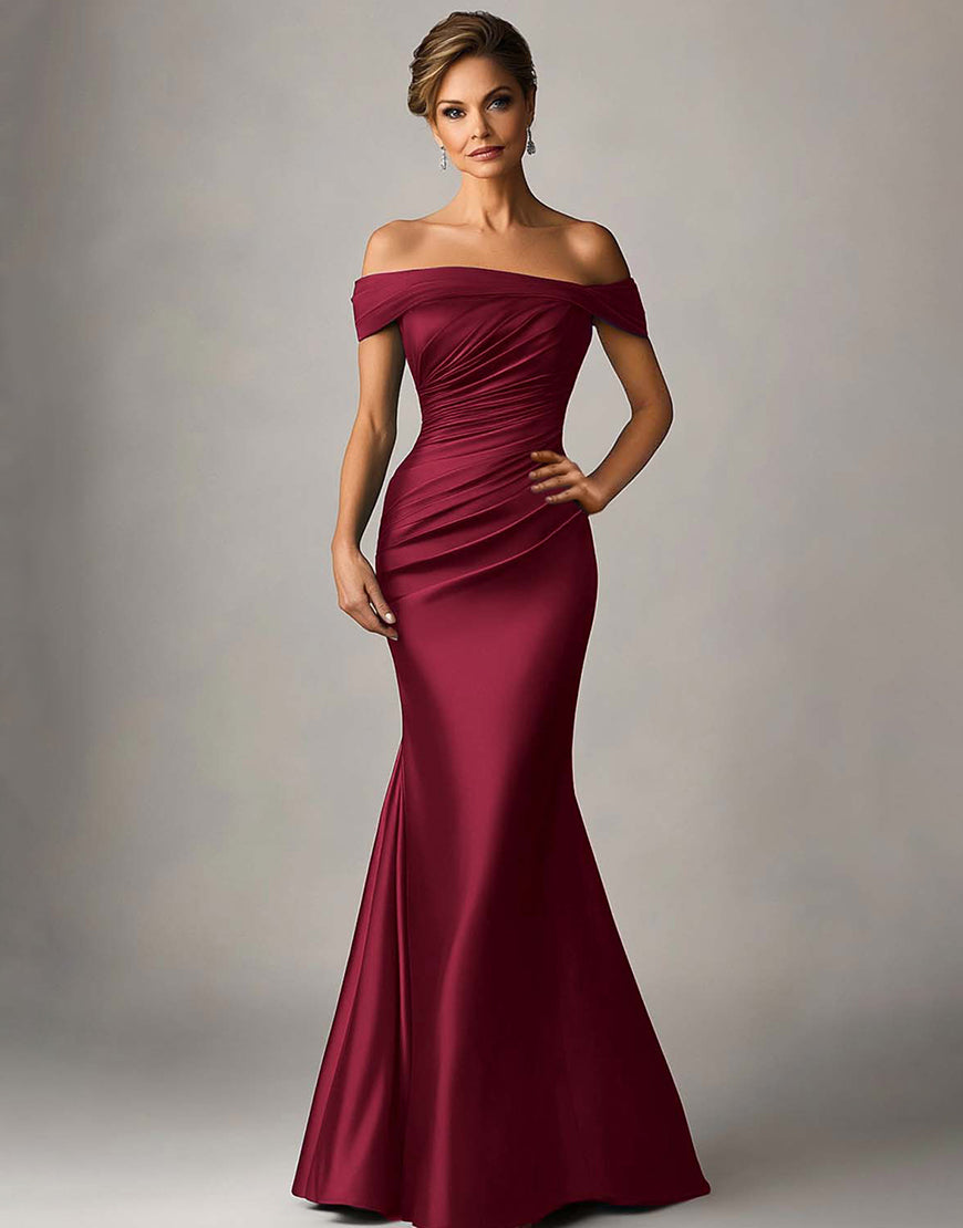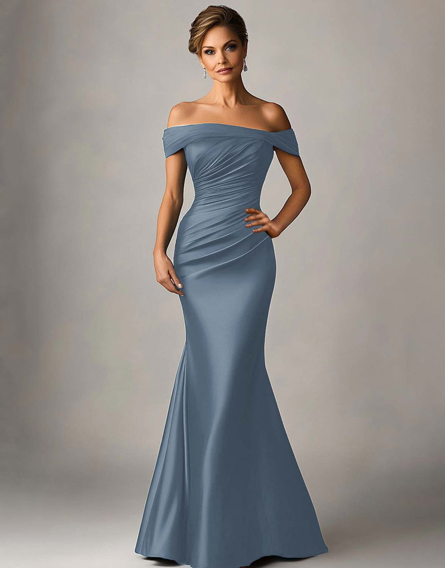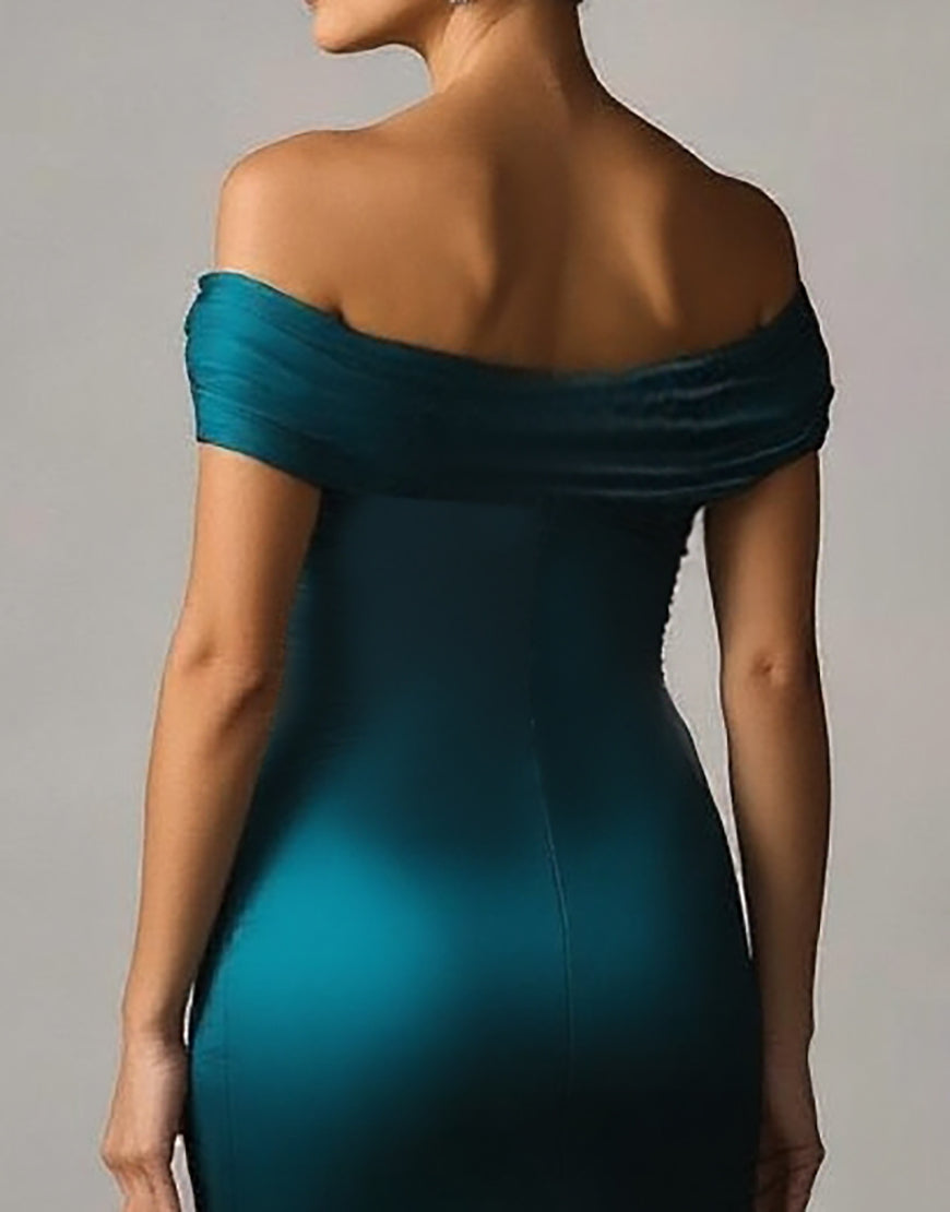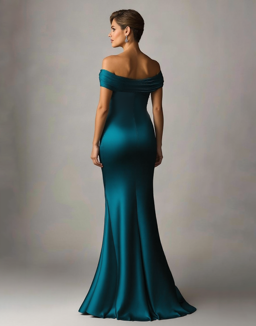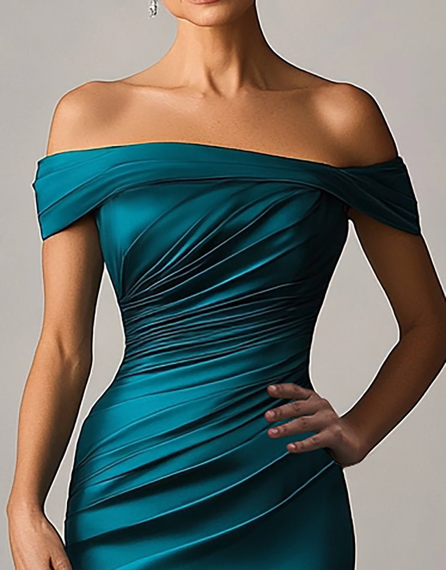 Peacock Blue Mermaid Off The Shoulder Ruched Satin Formal Dress