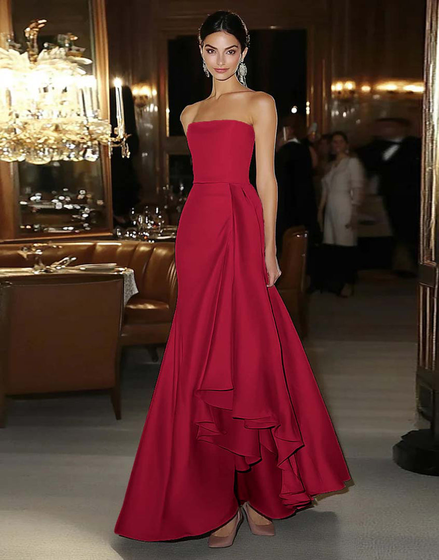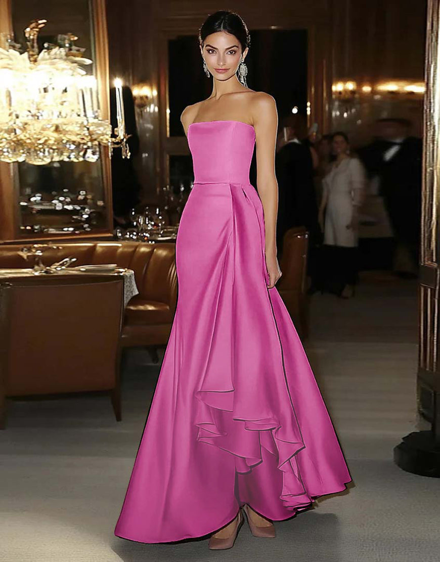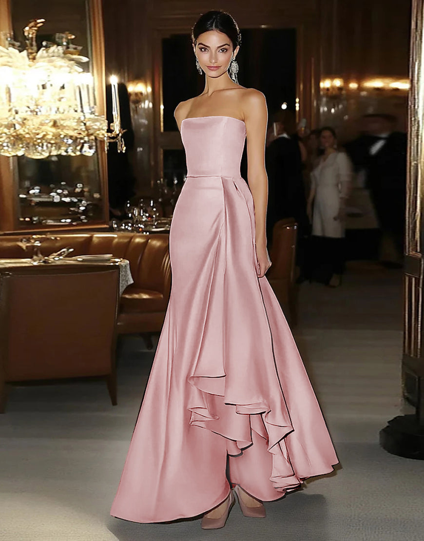 Sheath Pink Satin Strapless Formal Dress