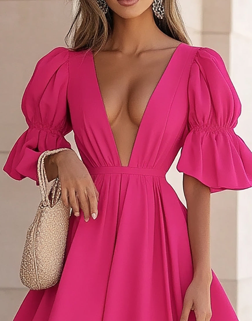 A Line Ruffled Pleated Hot Pink Graduation Dress