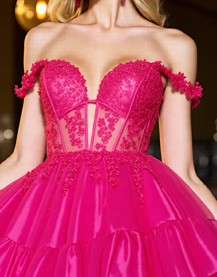 Fuchsia Off The Shoulder Appliqued Corset Homecoming Dress