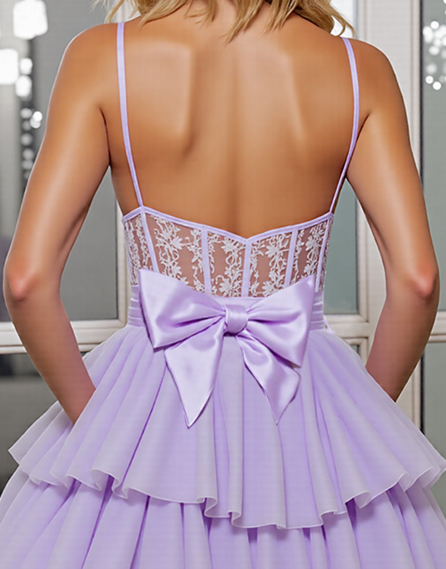 Lilac Corset Appliqued A Line Homecoming Dress with Bow