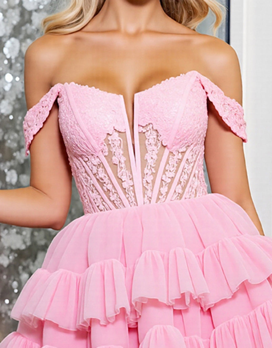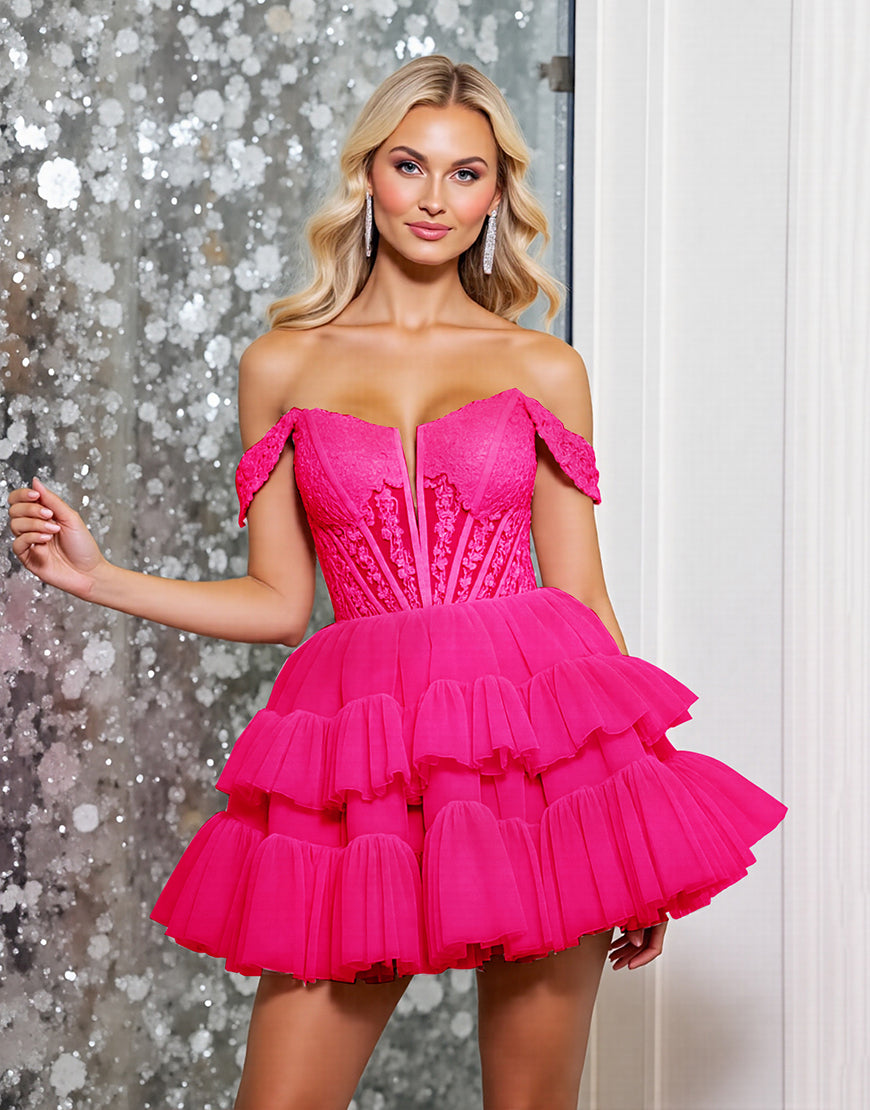 Off The Shoulder Pink Corset A Line Homecoming Dress