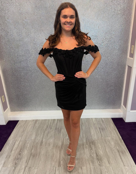 Off the Shoulder Red Floral Corset Tight Homecoming Dress