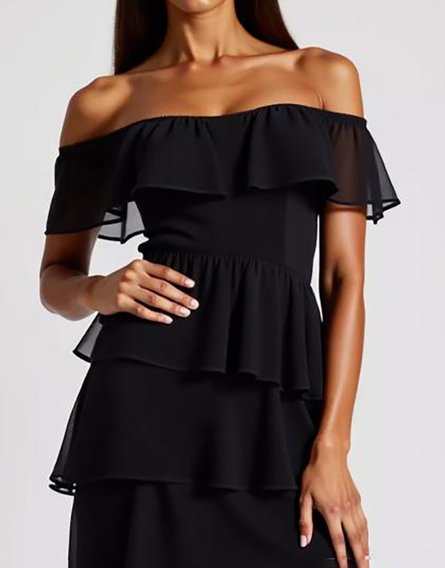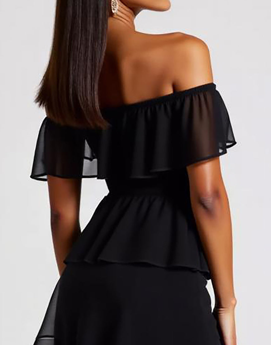Off the Shoulder Tiered Chiffon Little Black Dress