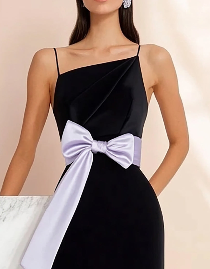Black Spaghetti Straps Cocktail Dress with Bow