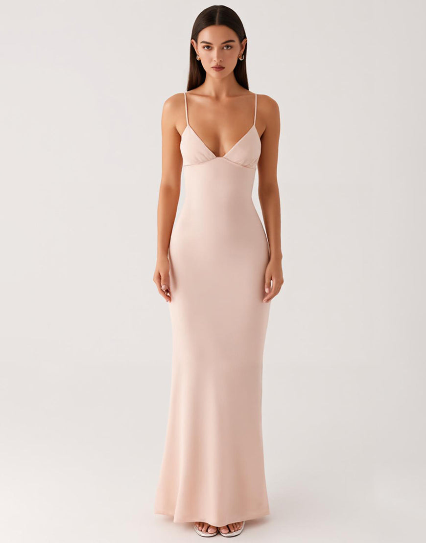Apricot Chiffon Spaghetti Straps Sheath Long Evening Dress