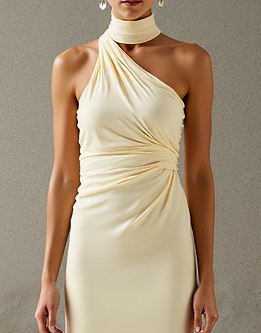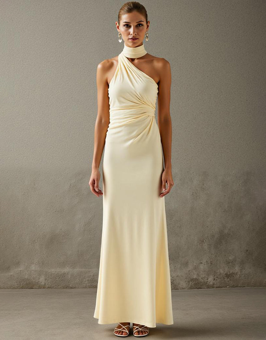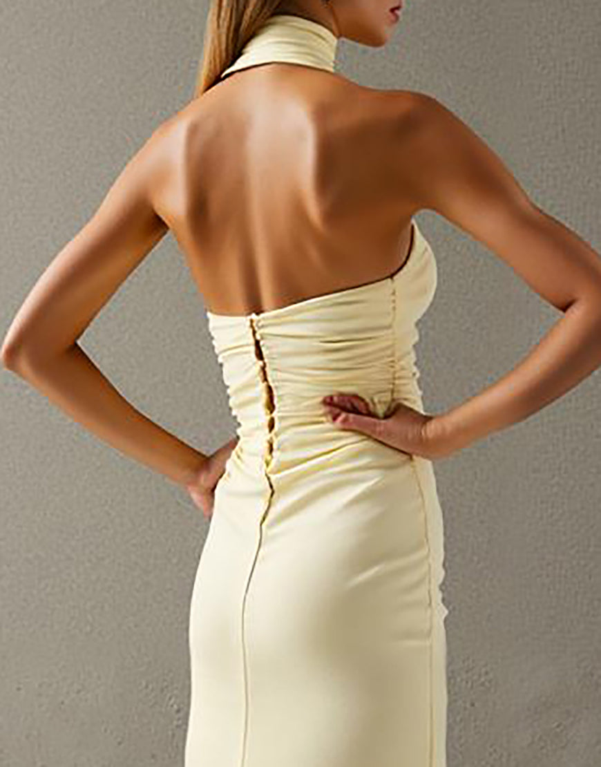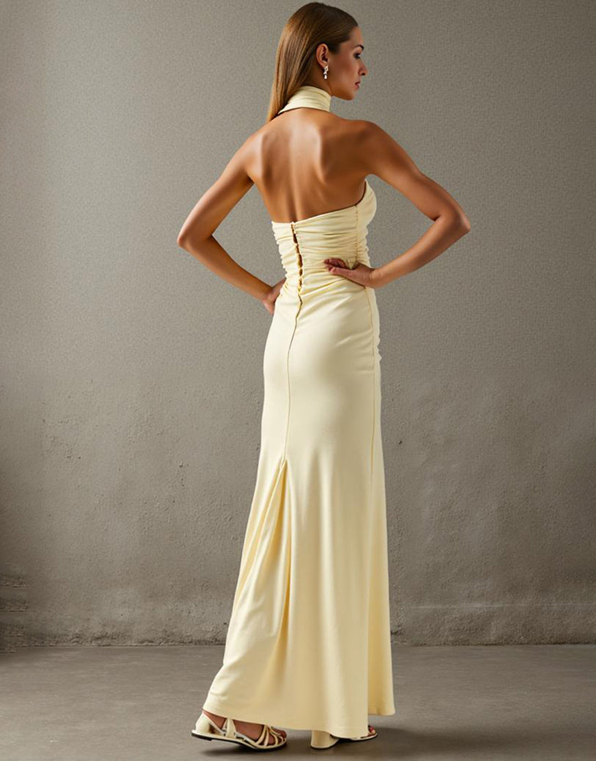 Elegant Halter Sheath Light Yellow Evening Dress