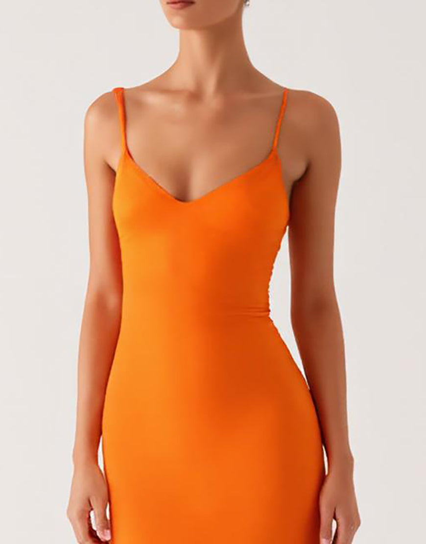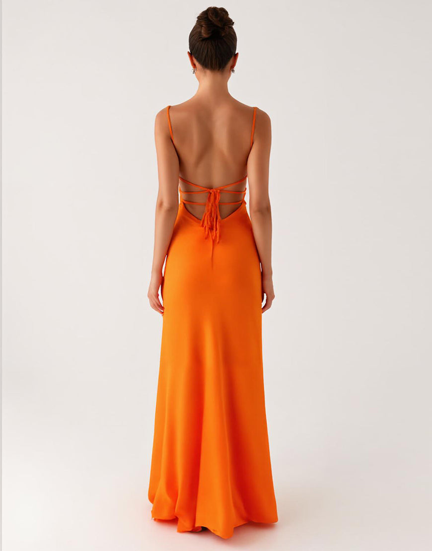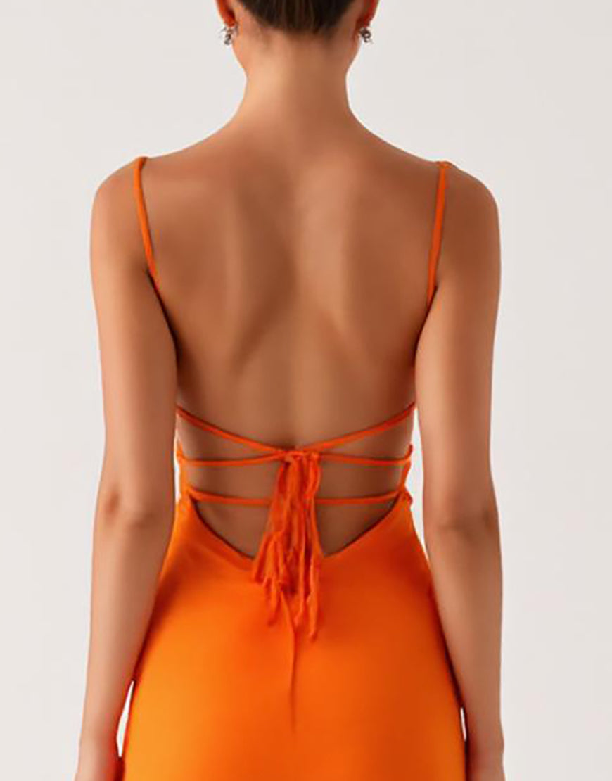 Halter Orange Sheath Lace Up Back Evening Dress