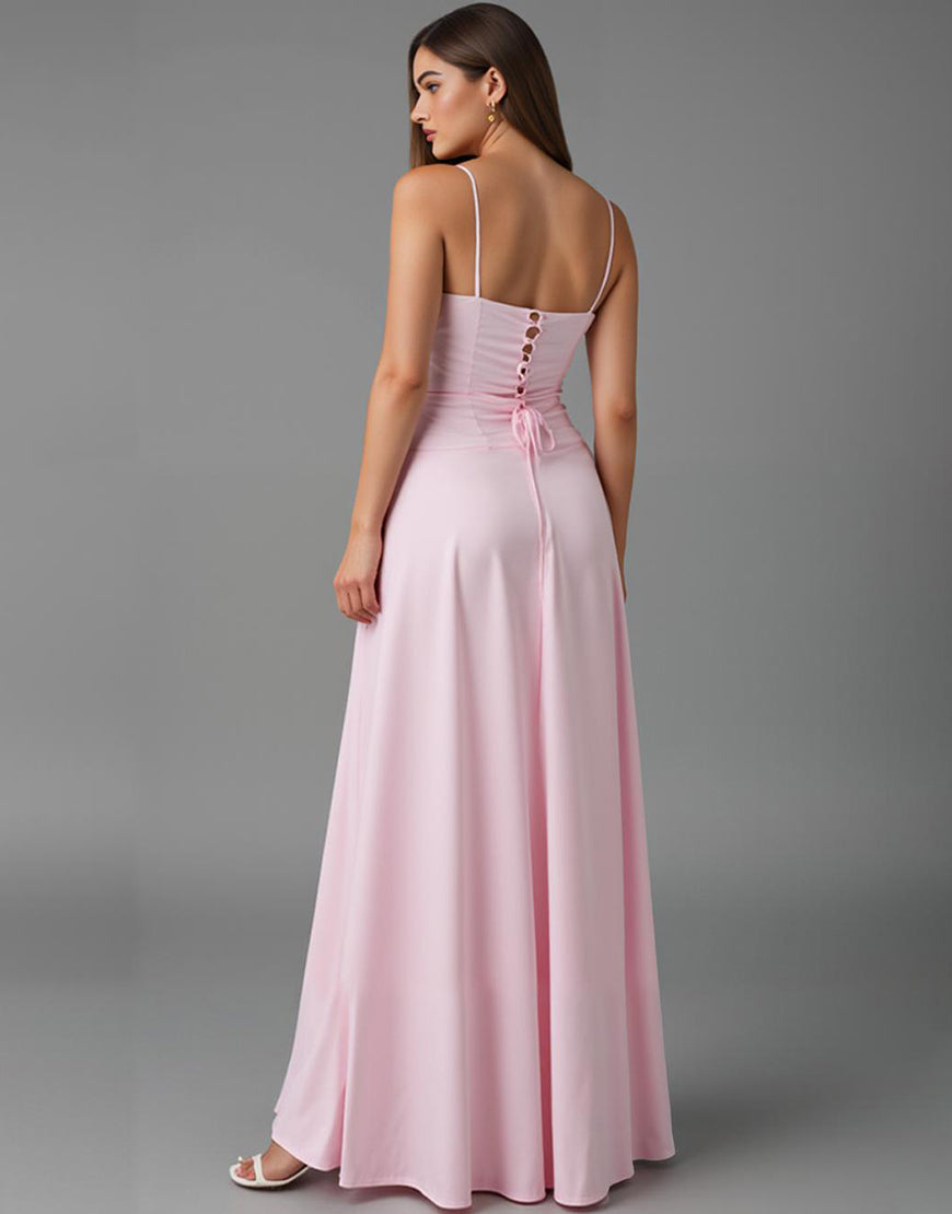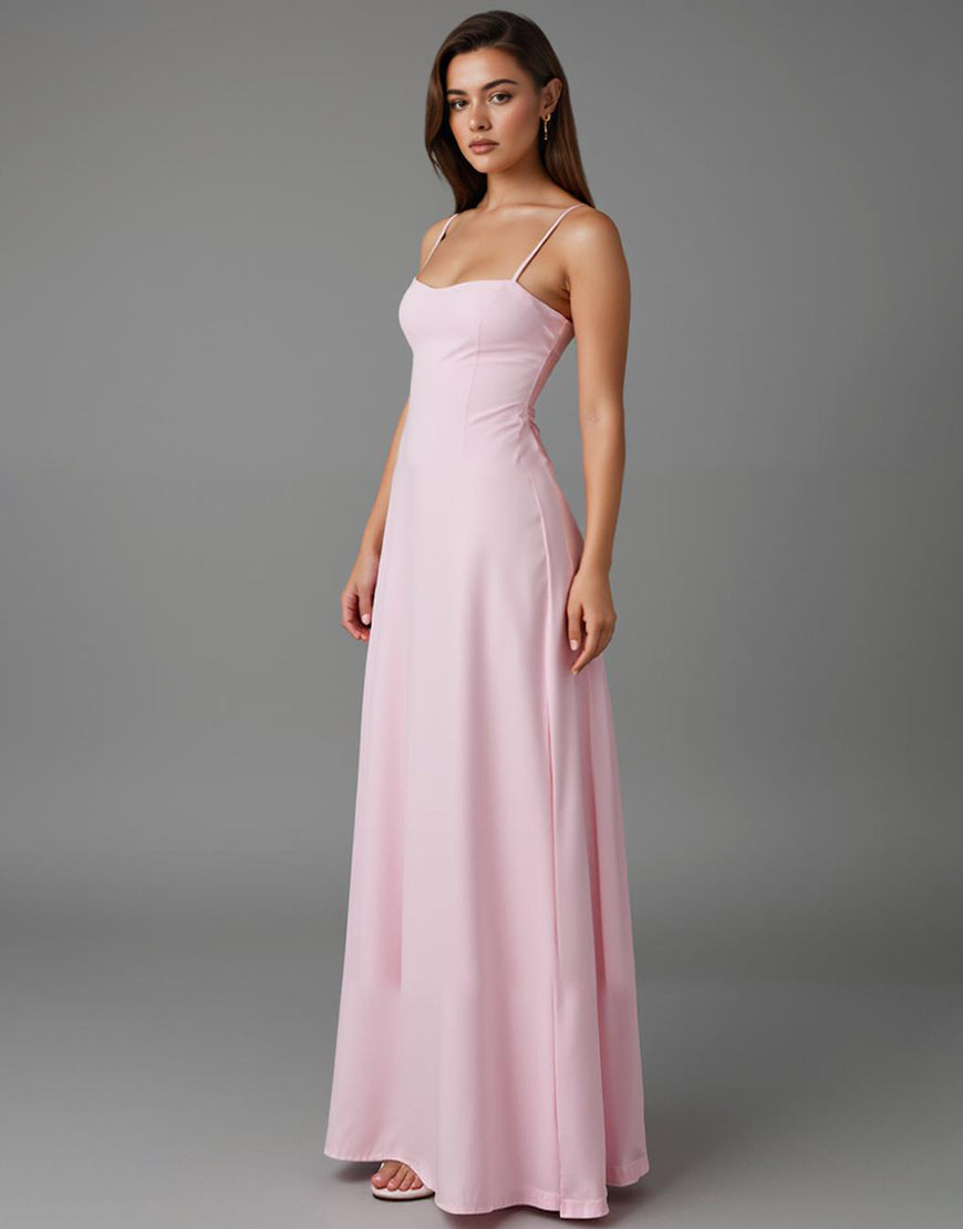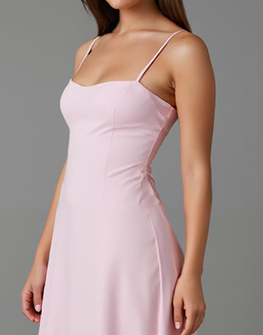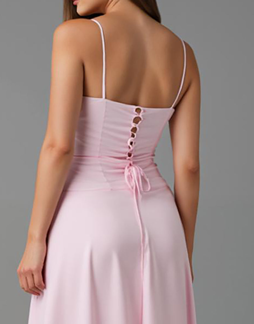 Light Pink Spaghetti Straps A Line Chiffon Evening Dress