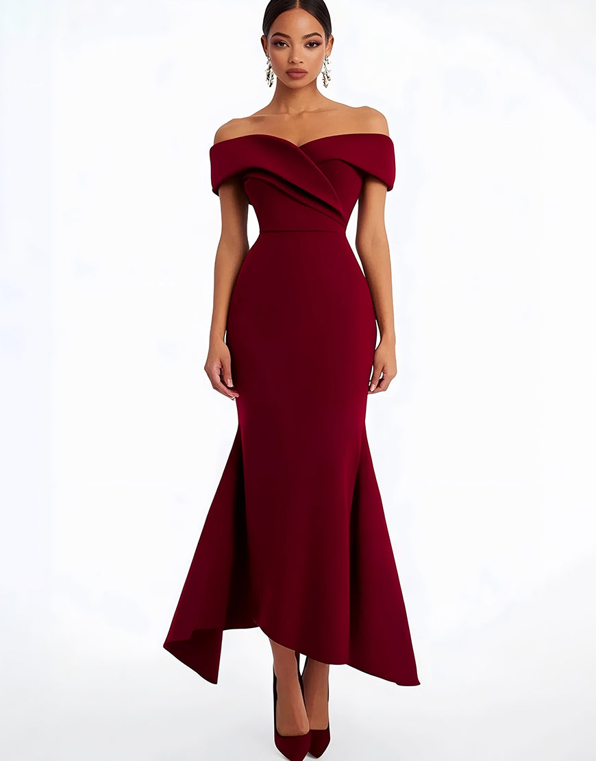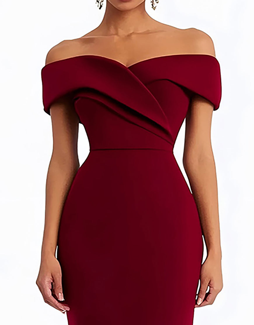 Mermaid Burgundy Strapless Off The Shoulder Ruched Floor-Length Formal Dress