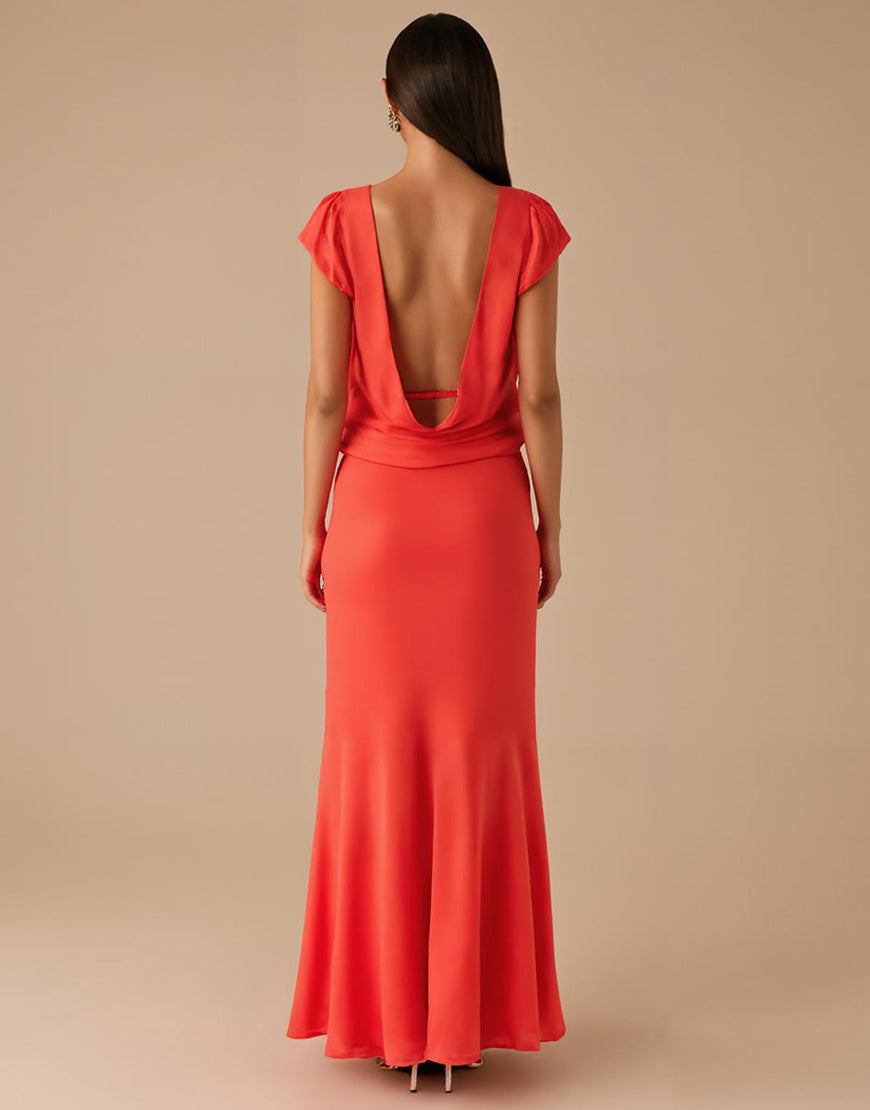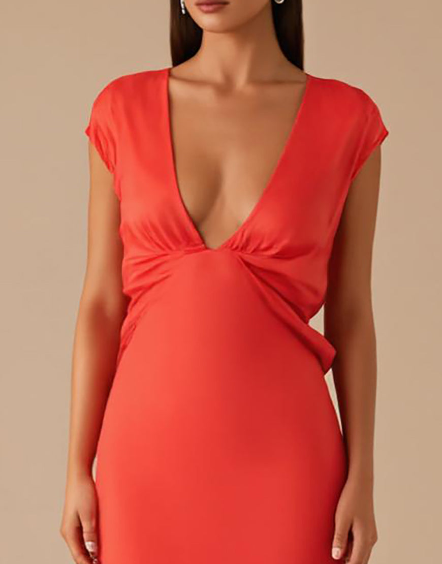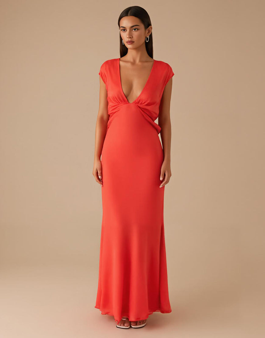 Orange V-Neck Chiffon Sheath Formal Dress