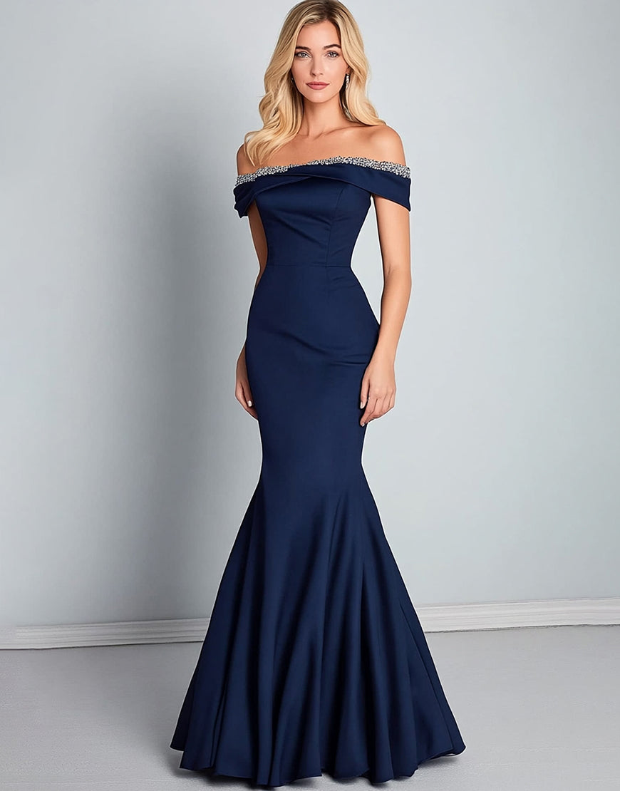 Sparkly Off the Shoulder Navy Mermaid Formal Dress