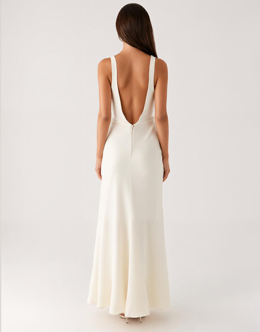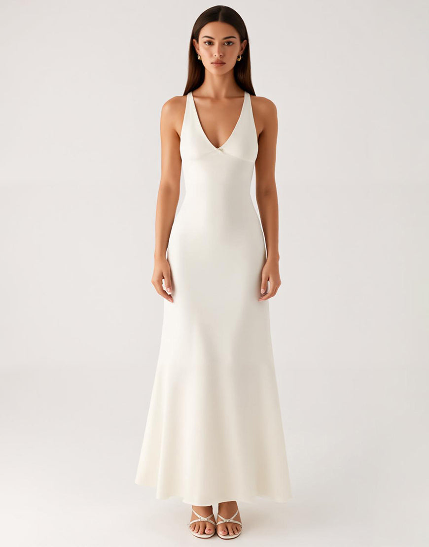 V-Neck Ivory Sheath Ankle Length Evening Dress
