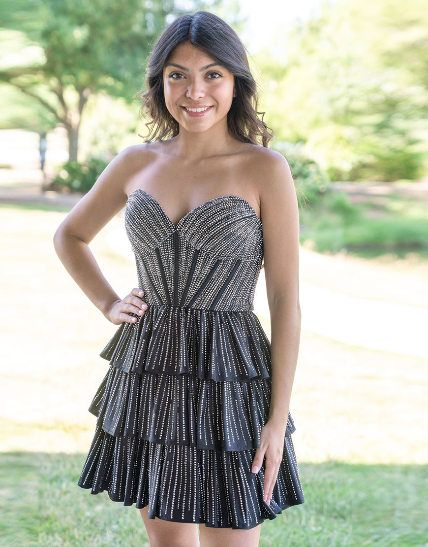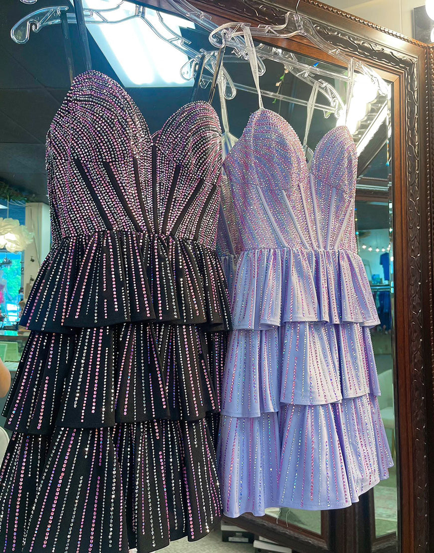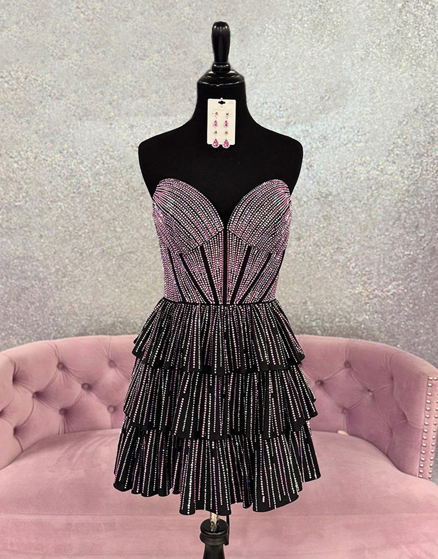 Black Pink A Line Strapless Sequins Homecoming Dress