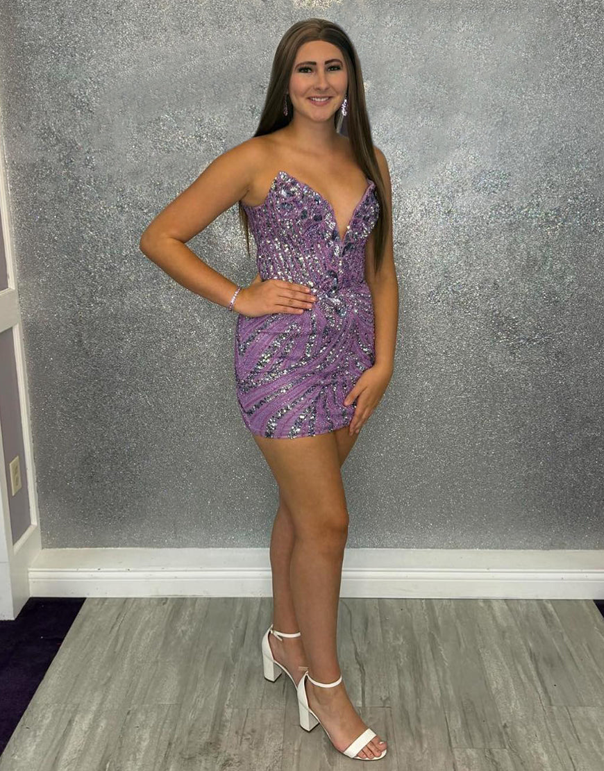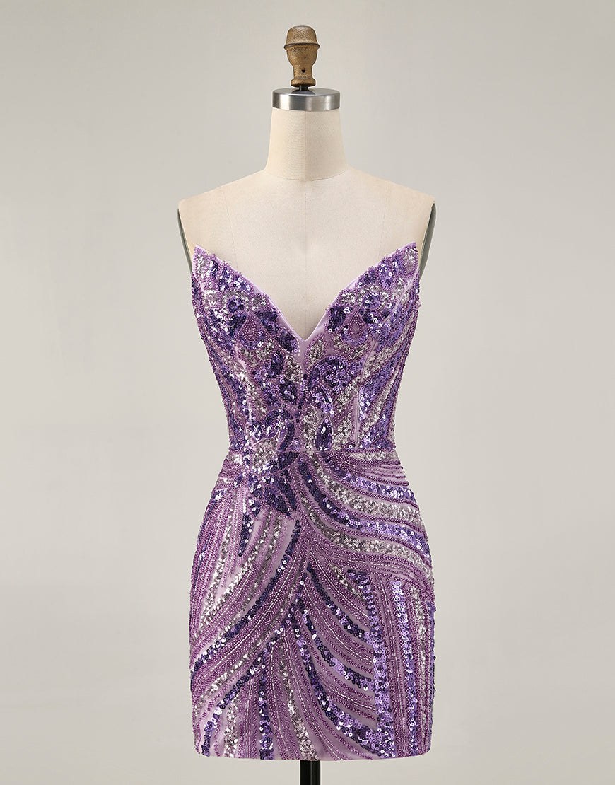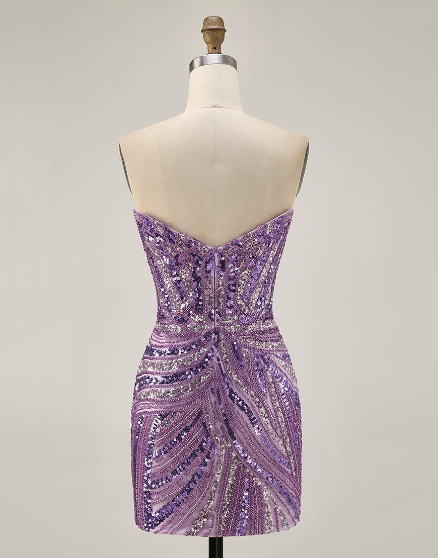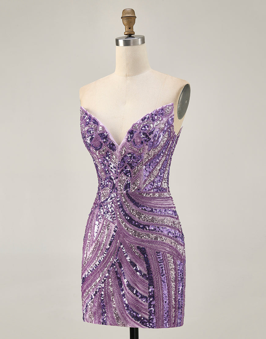 Sparkly Strapless Purple Bodycon Mini Homecoming Dress