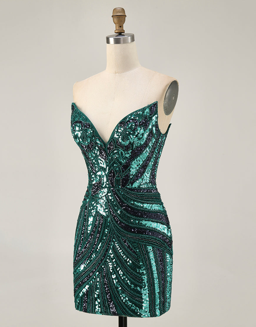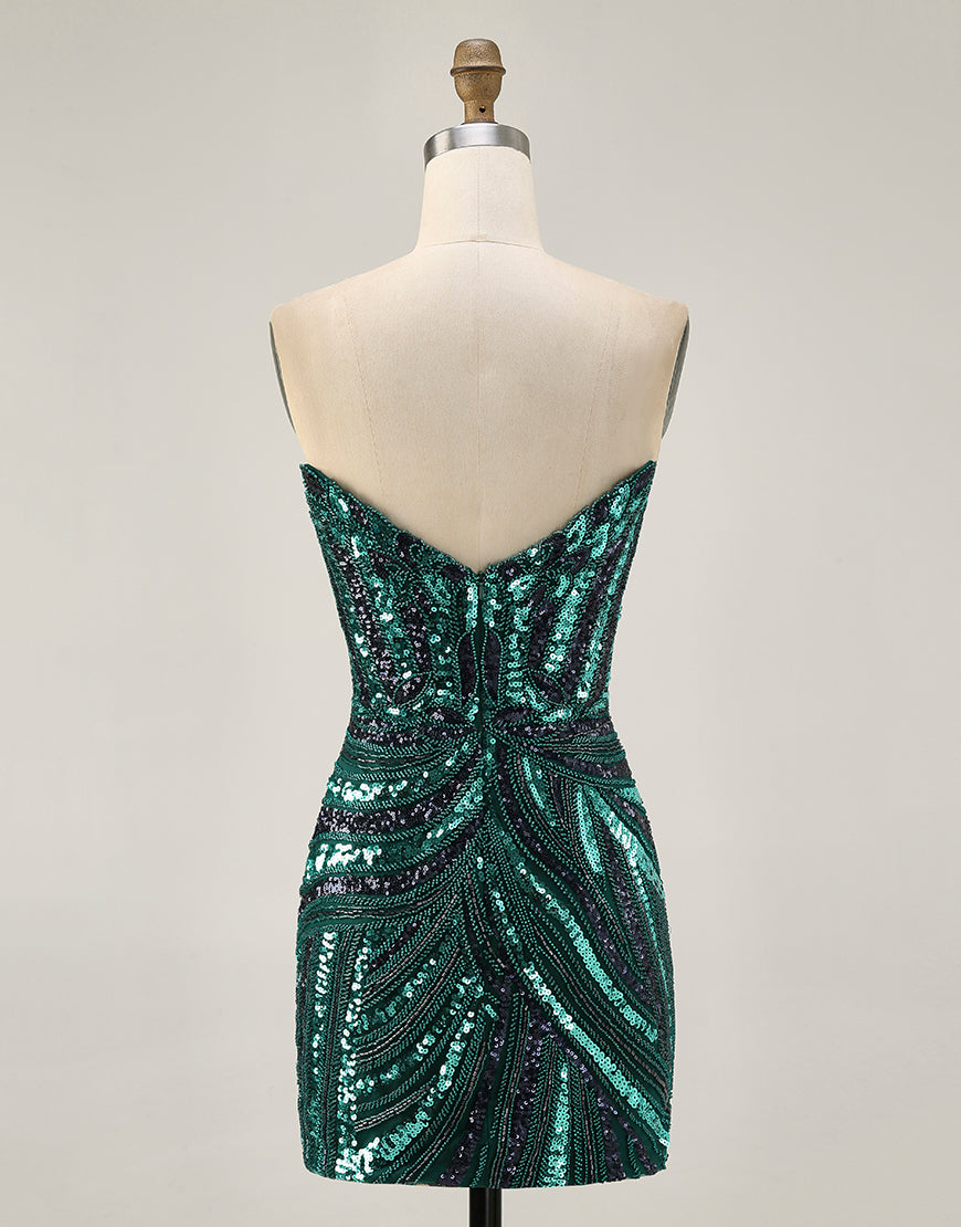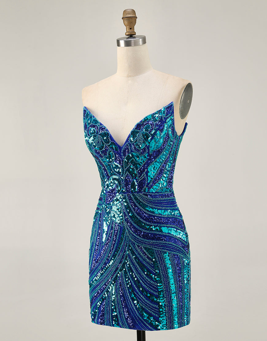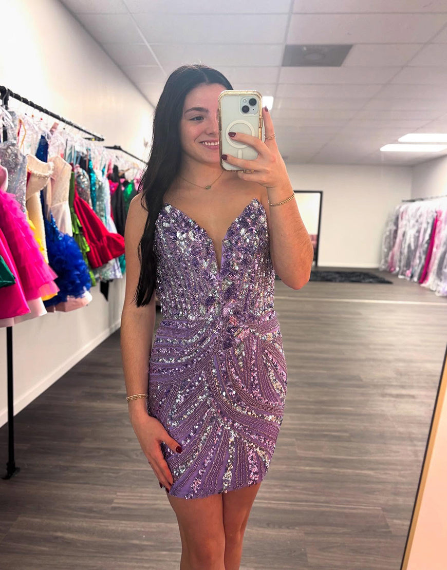 Sparkly Strapless Purple Bodycon Mini Homecoming Dress