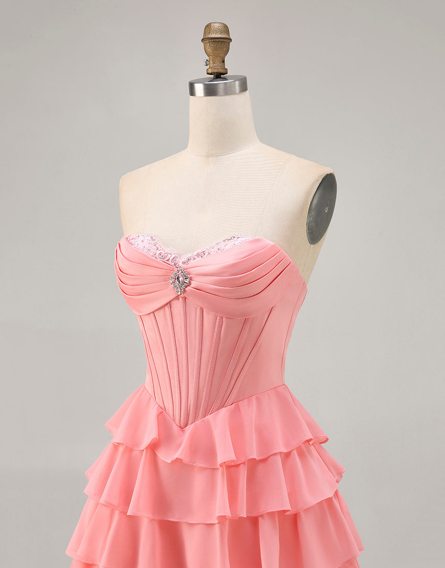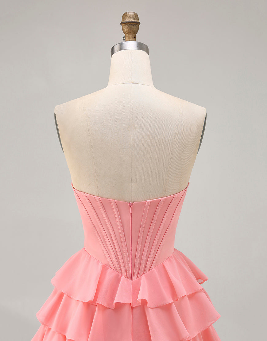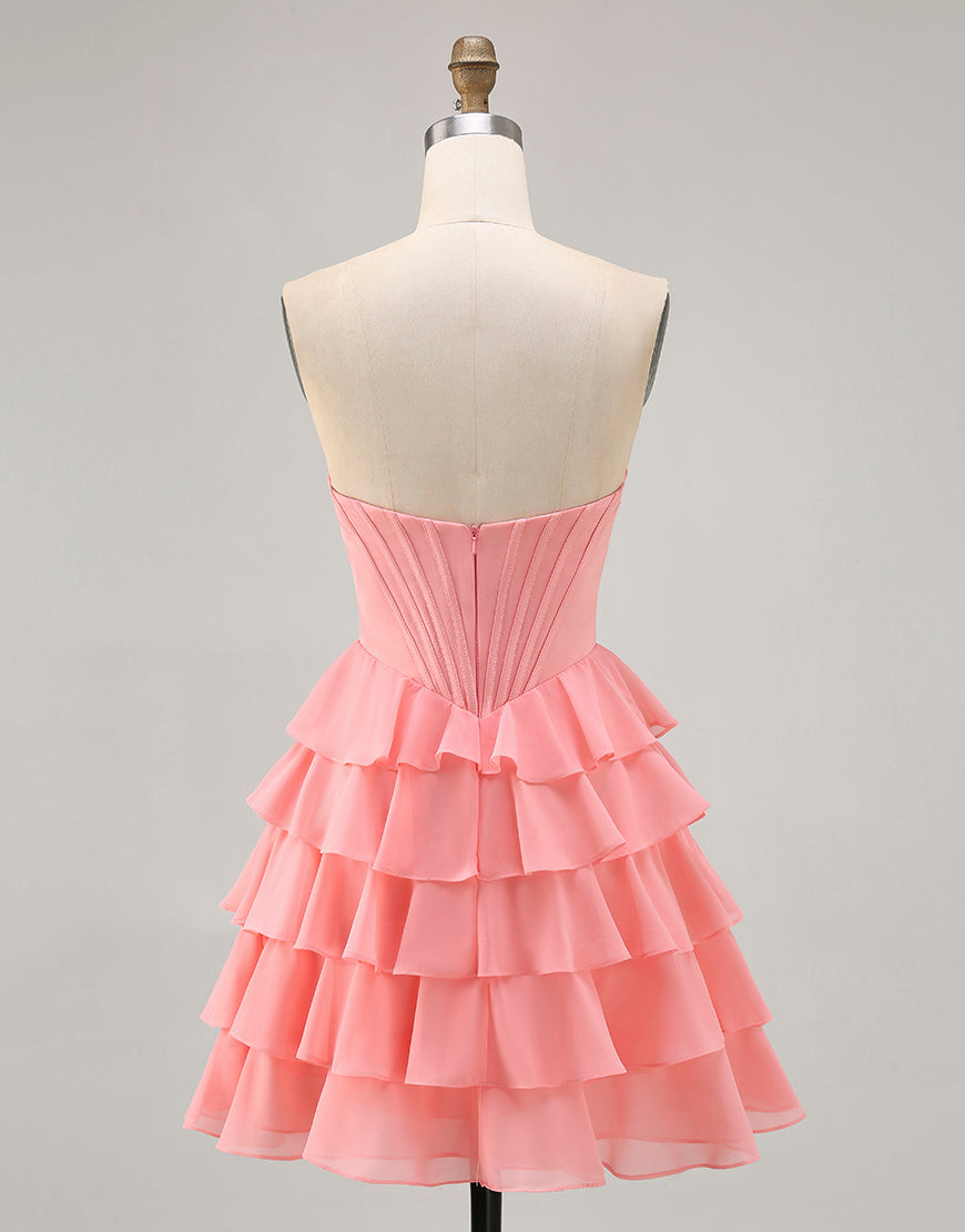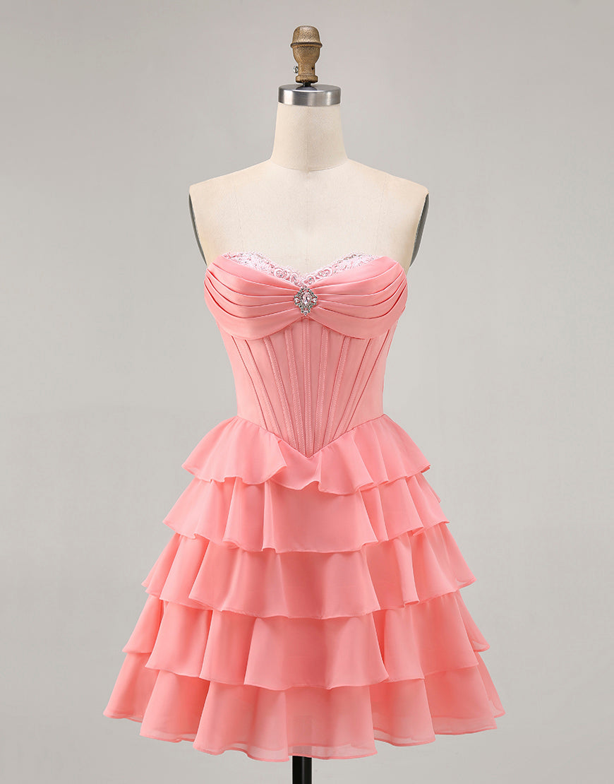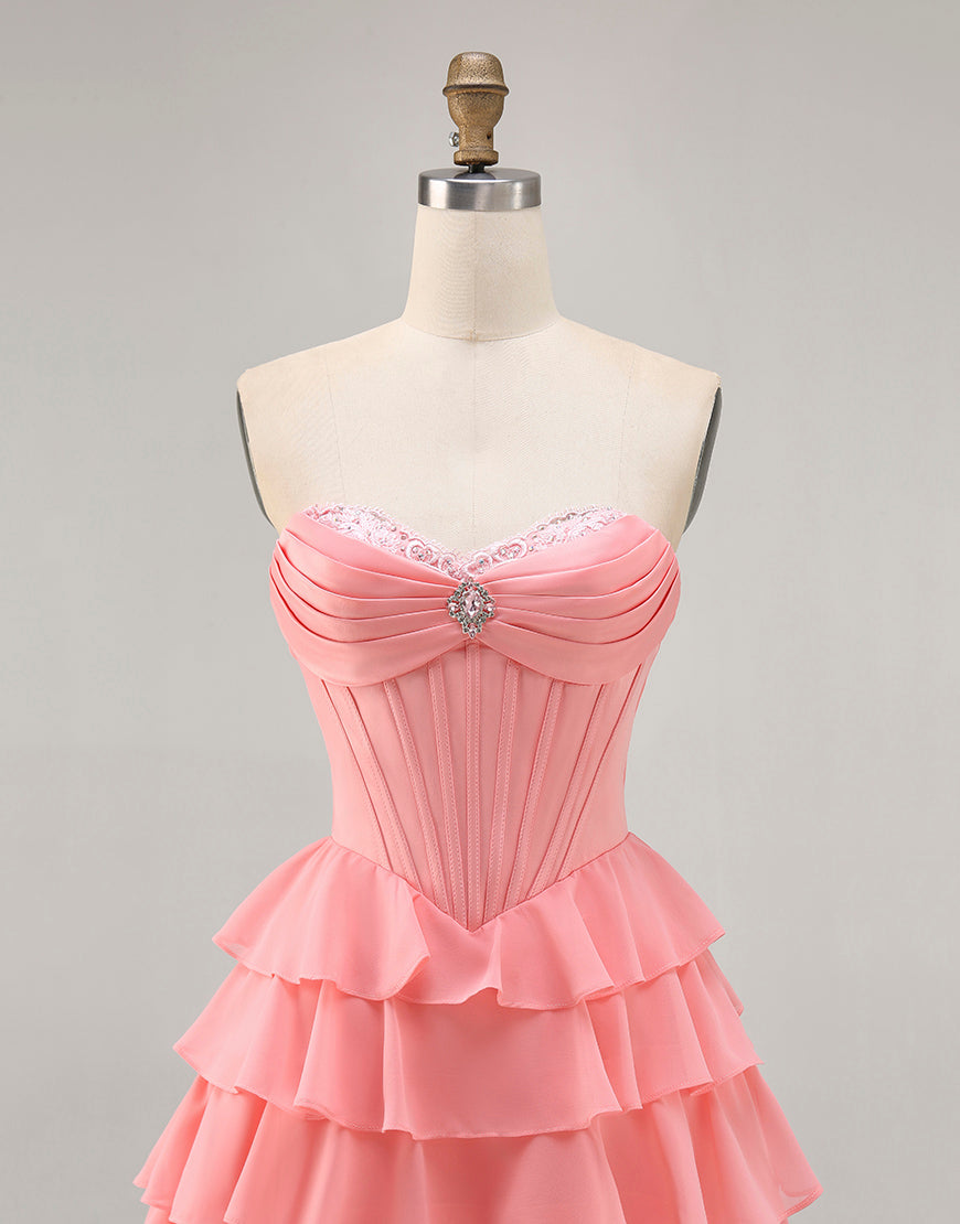 Blush A-Line Tiered Ruffle Corset Strapless Homecoming Dress