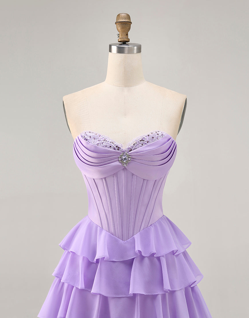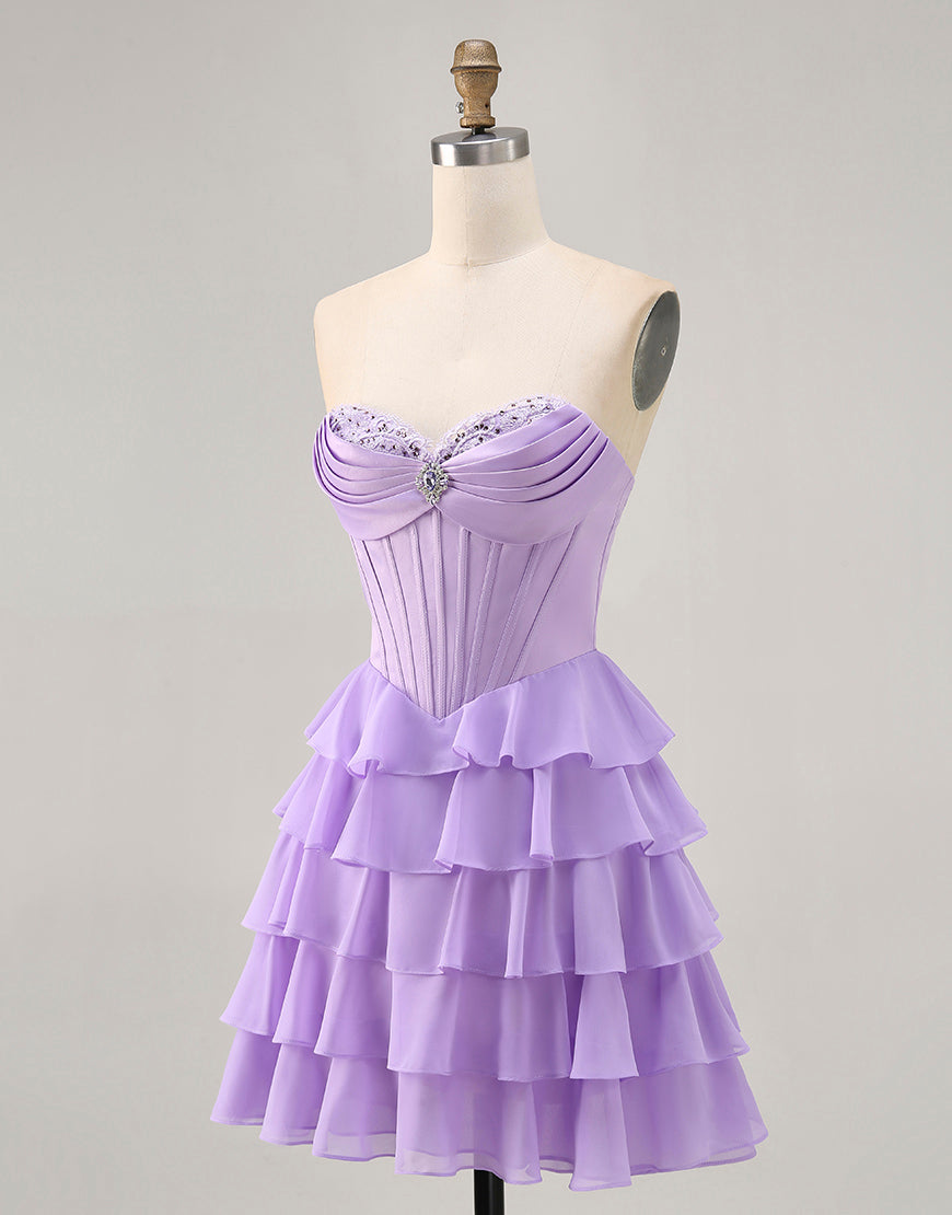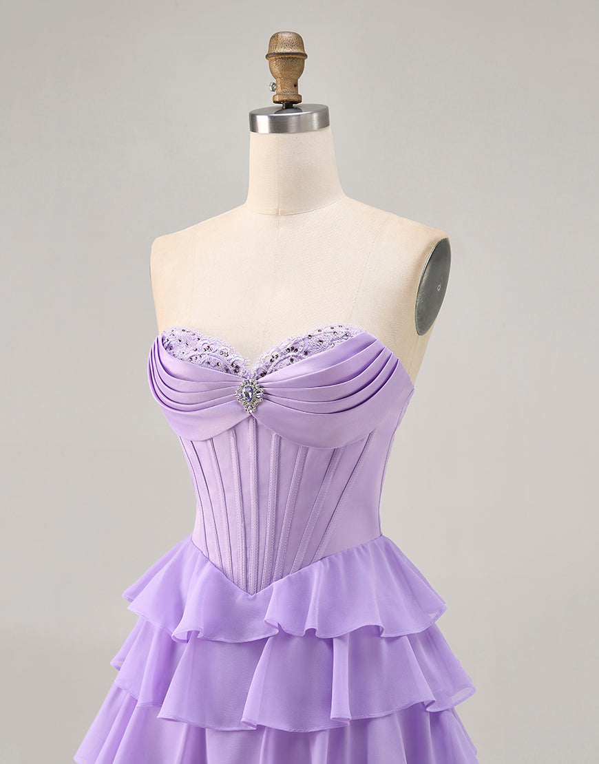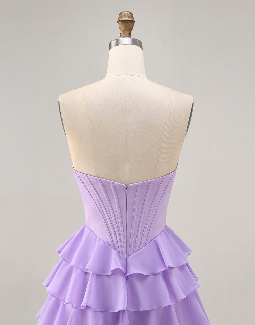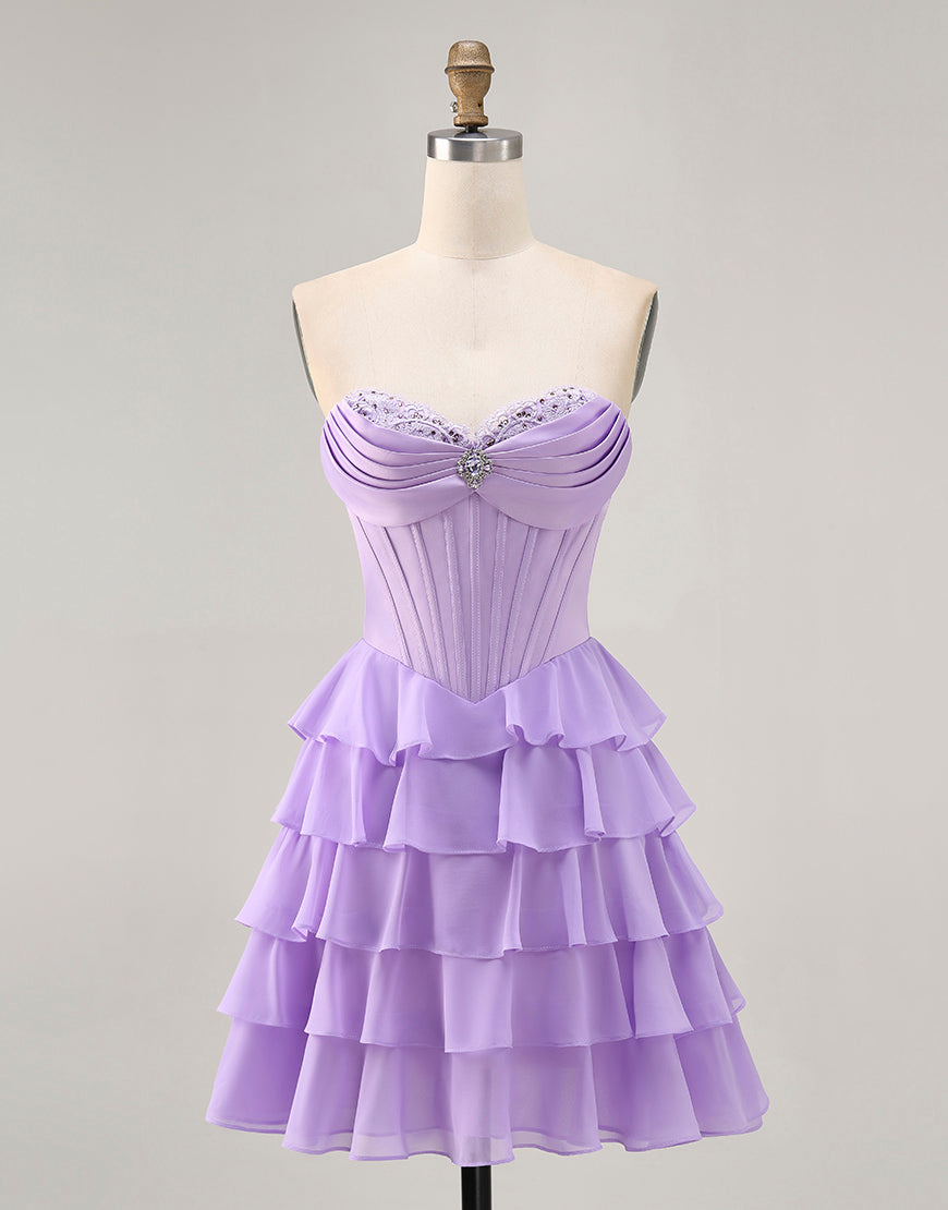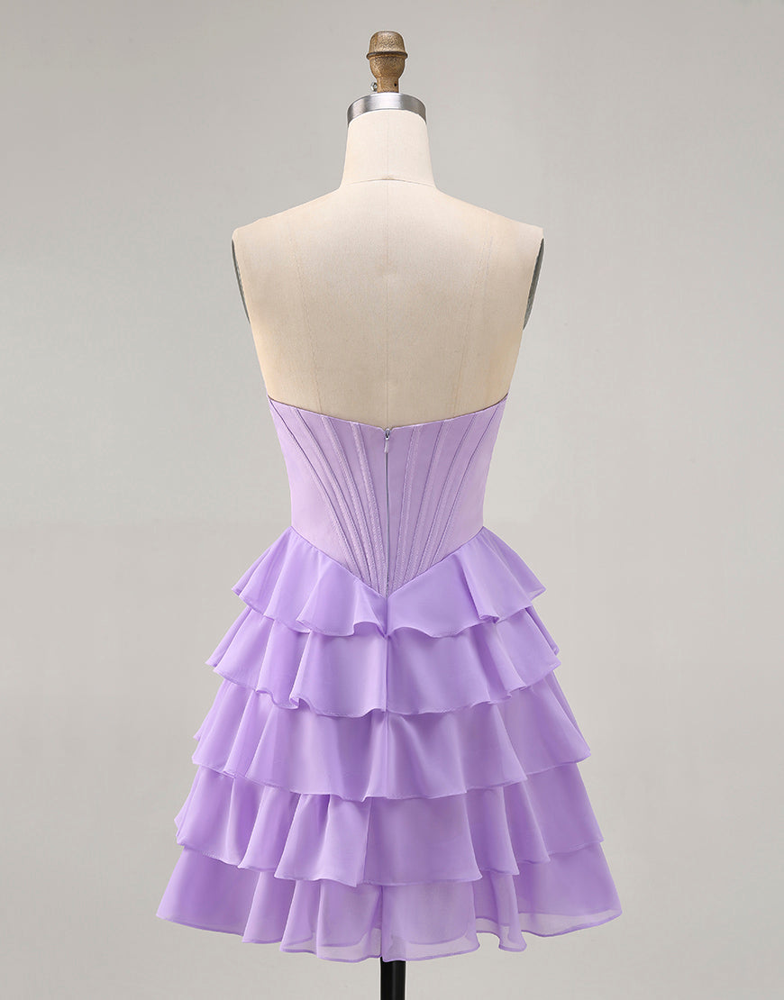 Blush A-Line Tiered Ruffle Corset Strapless Homecoming Dress
