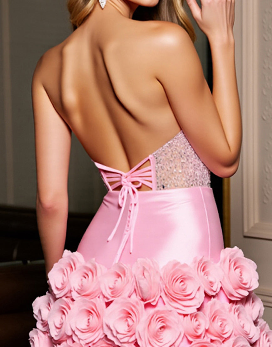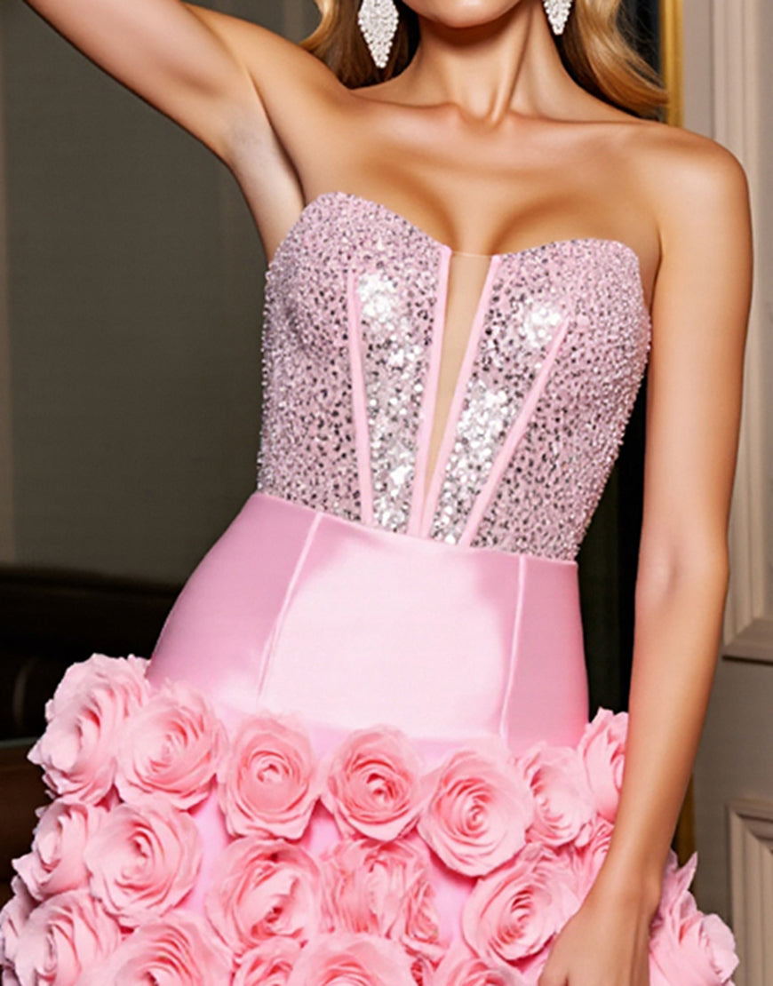 Corset Strapless Pink Sequin Homecoming Dress with 3D Flowers
