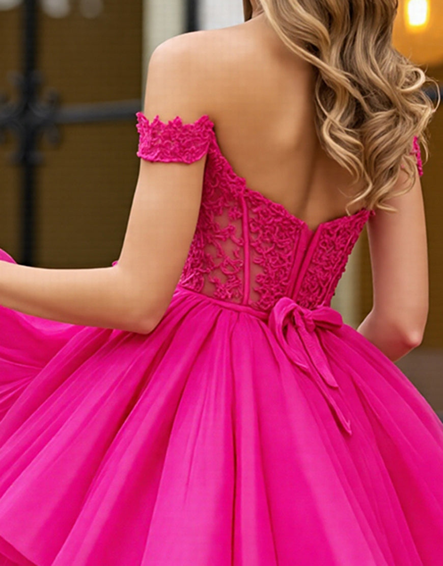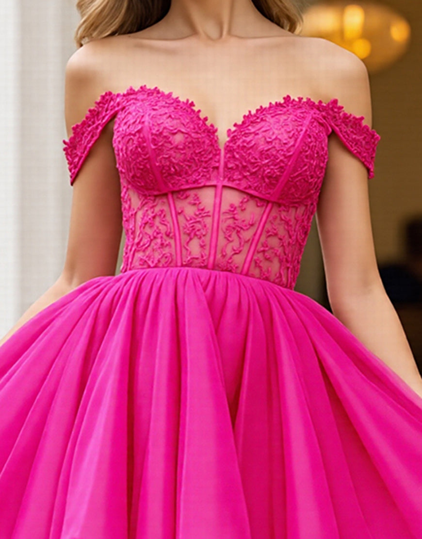 Off The Shoulder Corset Pink Homecoming Dress with Appliques