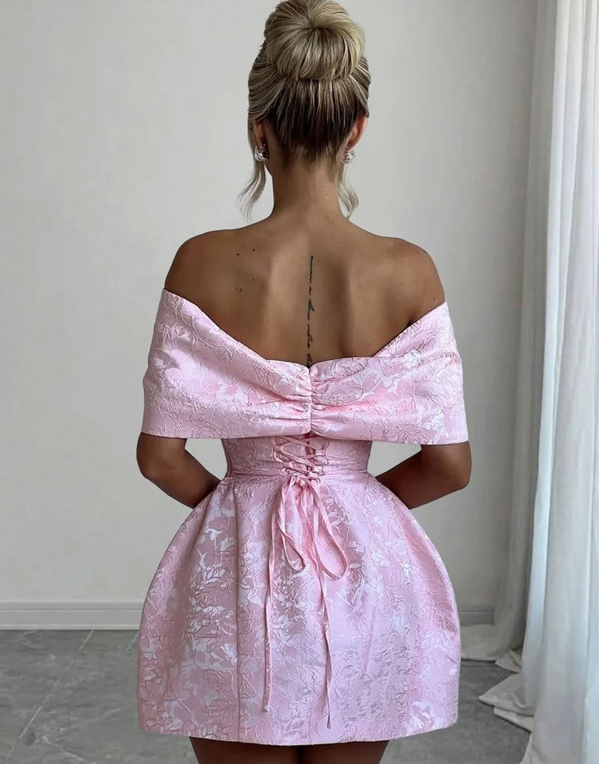 Off the Shoulder Pink A Line Floral Homecoming Dress