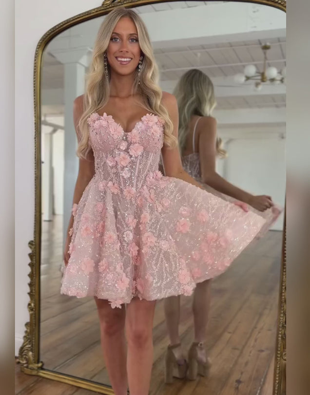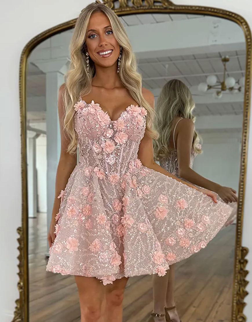 Pink Appliqued Sequins Homecoming Dress with 3D Flowers