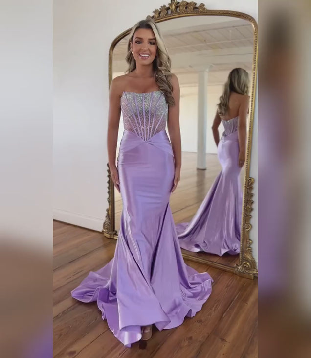 Purple Mermaid Strapless Prom Dress with Sleeveless