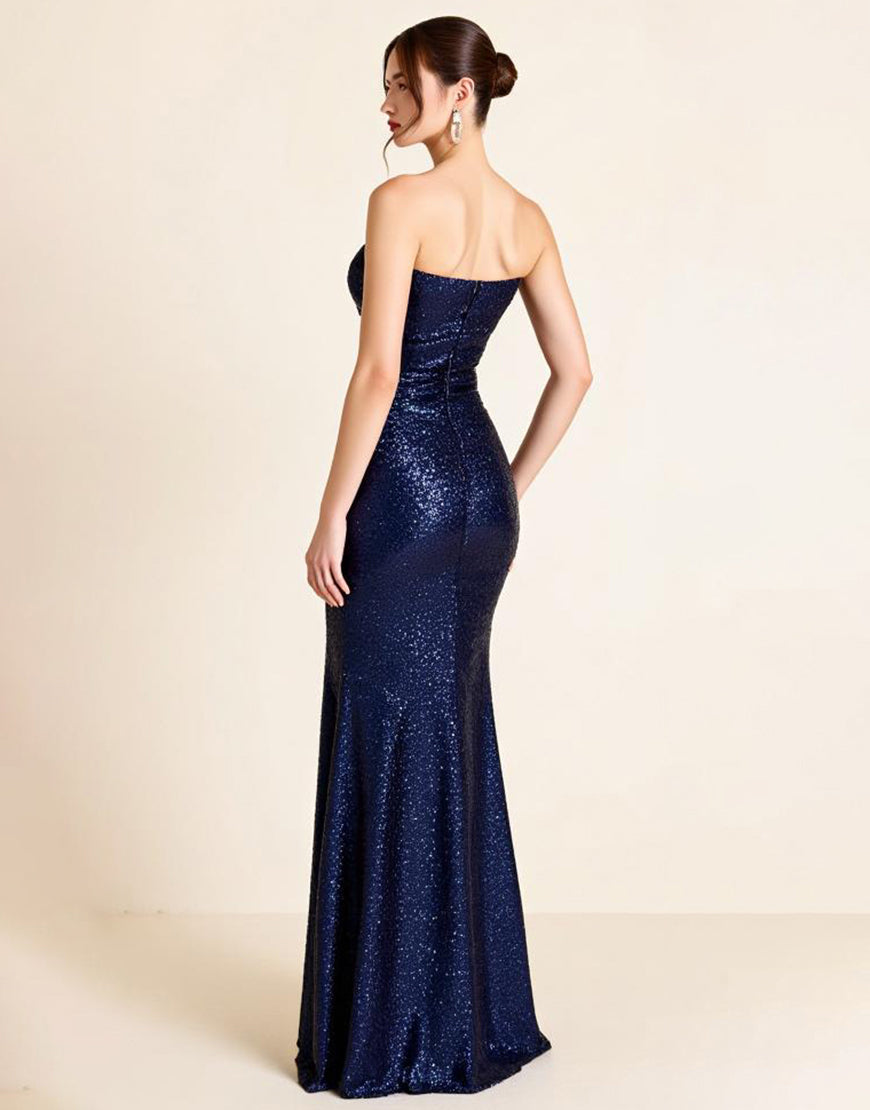Sparkly Strapless Mermaid Navy Formal Dress with Slit