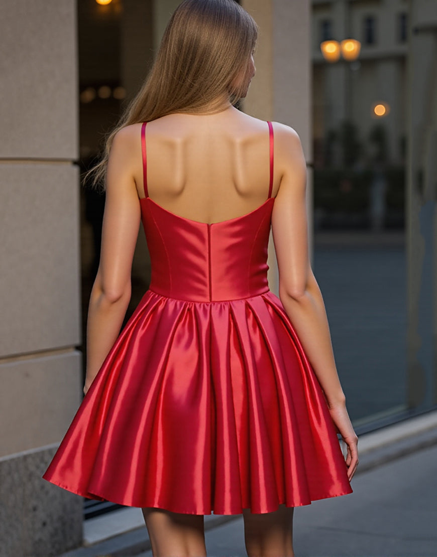 Red A Line Satin Homecoming Dress
