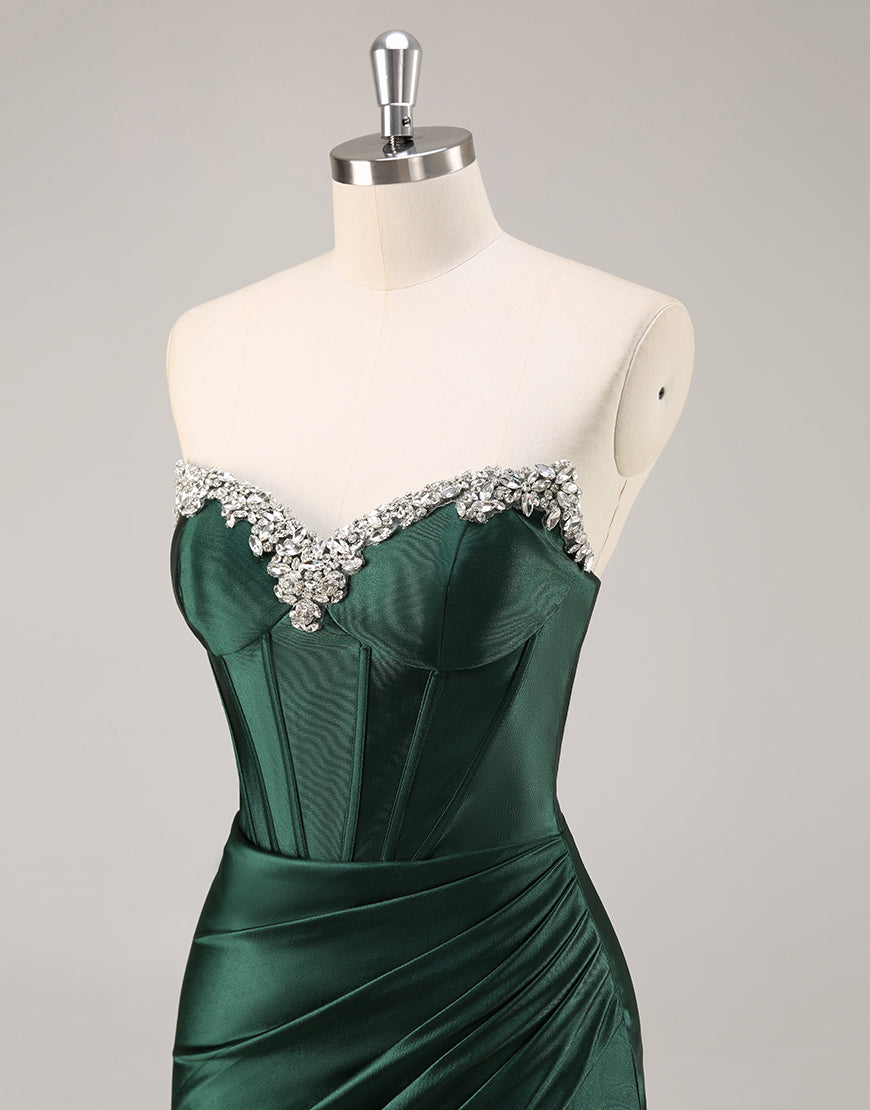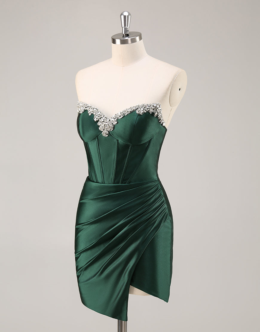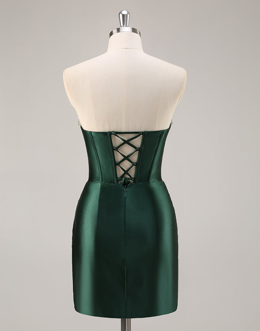 Strapless Beaded Corset Dark Green Homecoming Dress