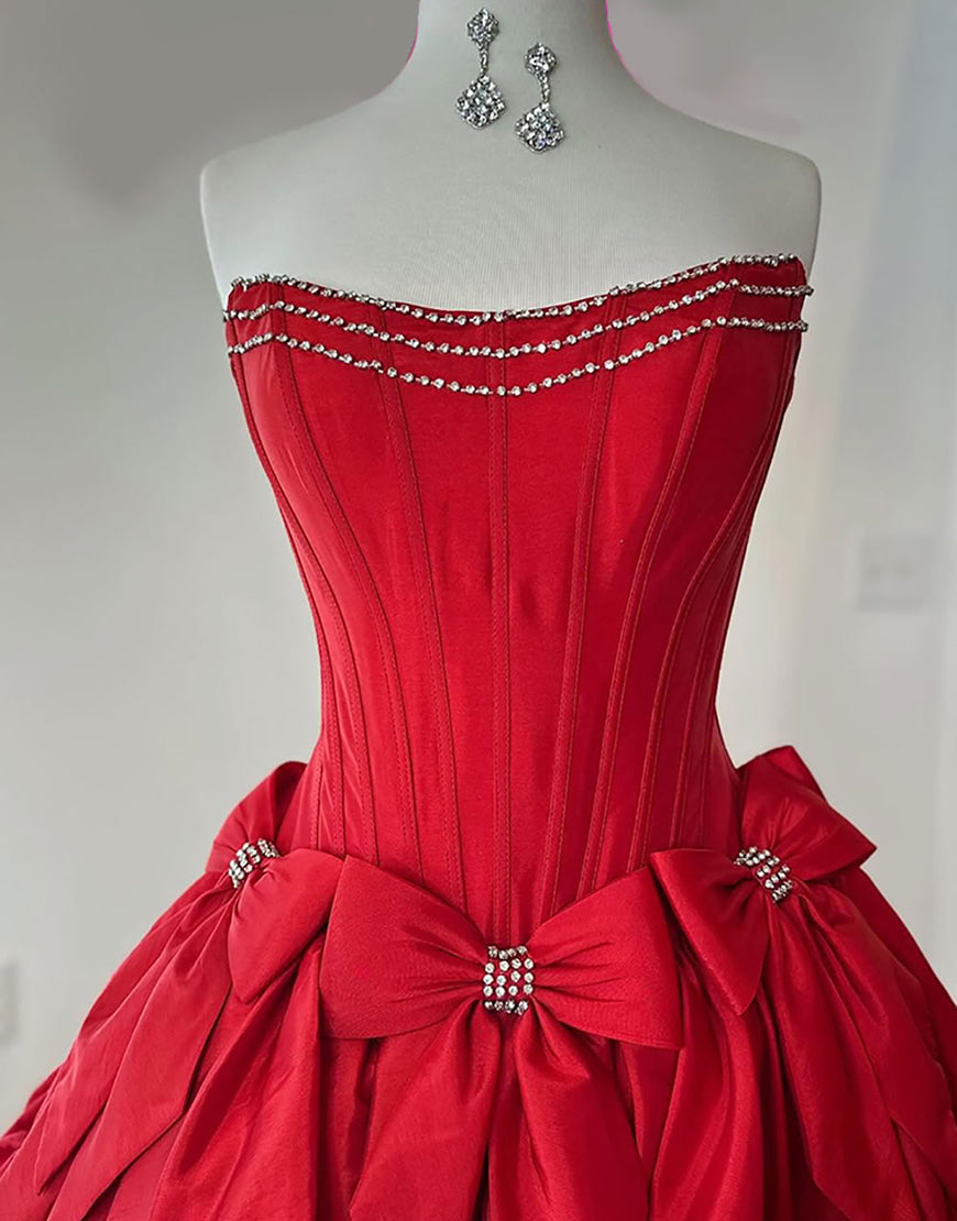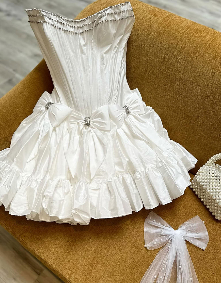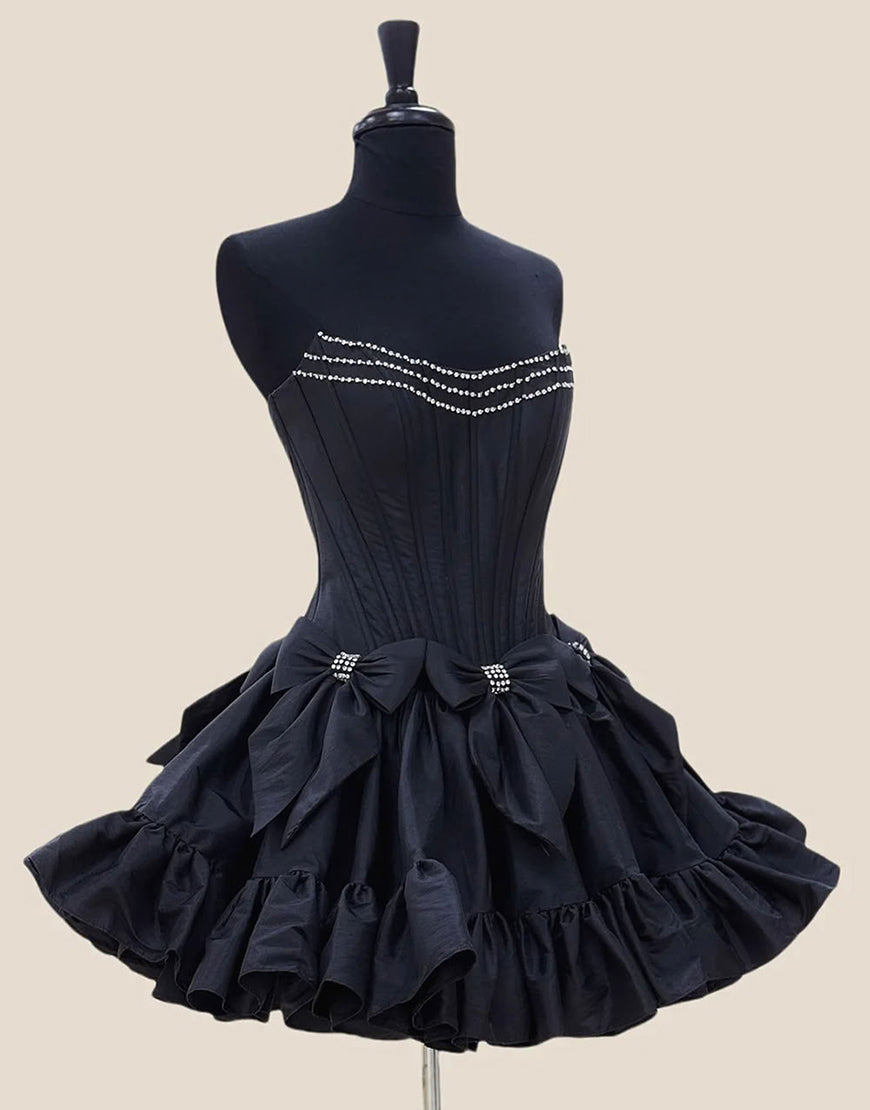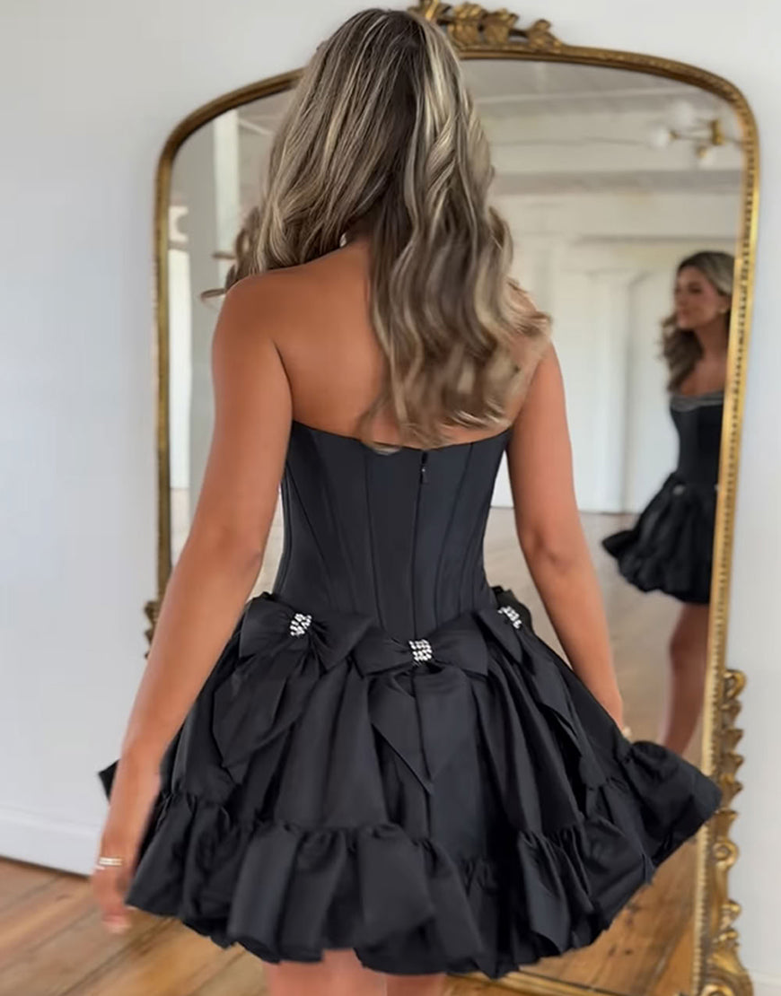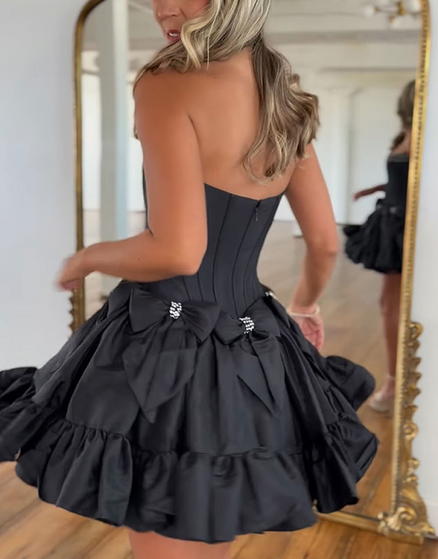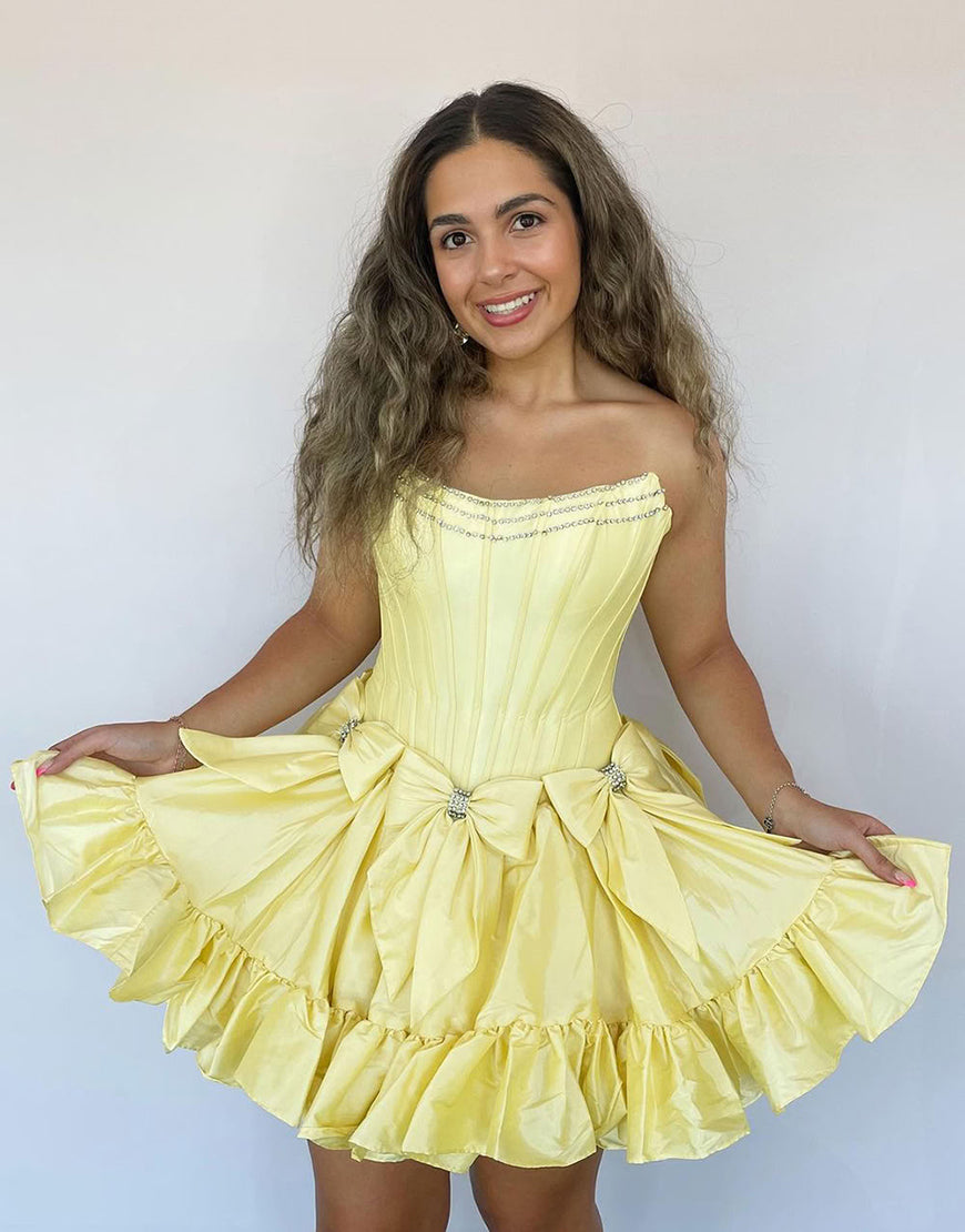 Sparkly Pink A Line Strapless Ruffled Corset Homecoming Dresses with Bow