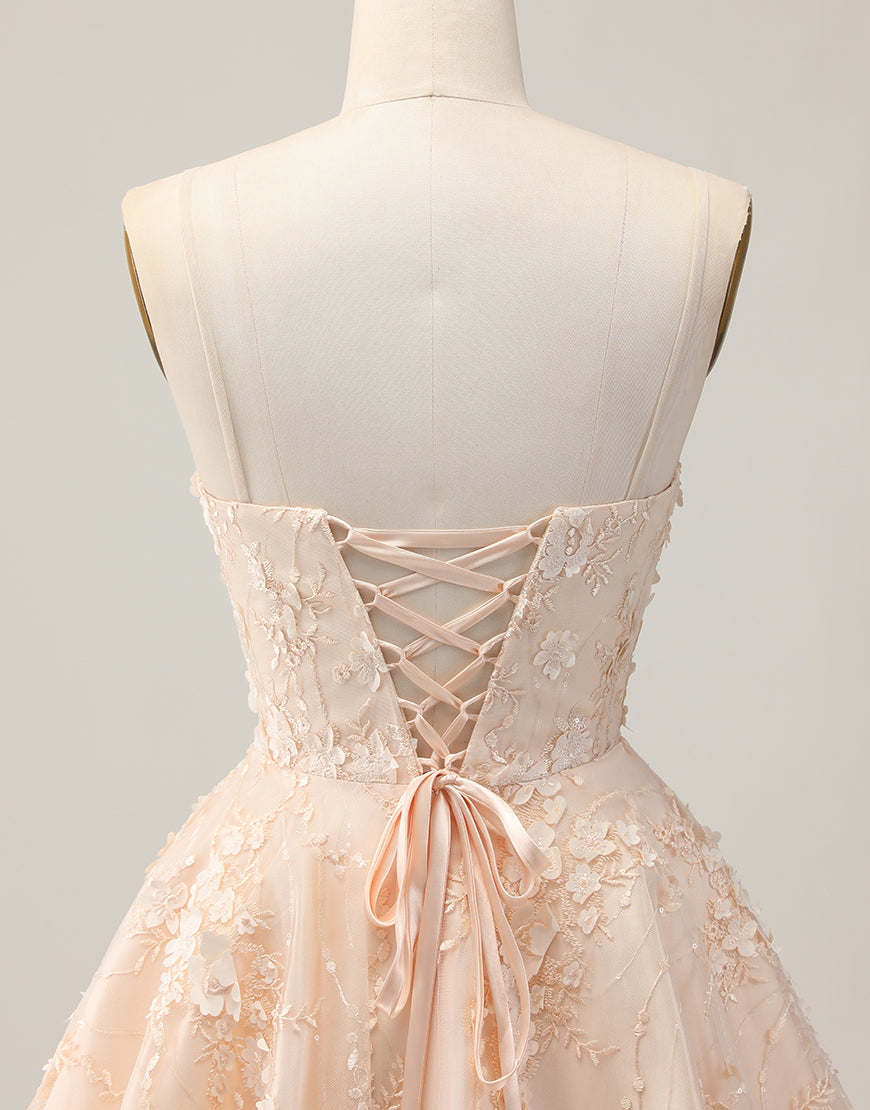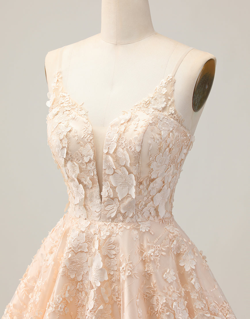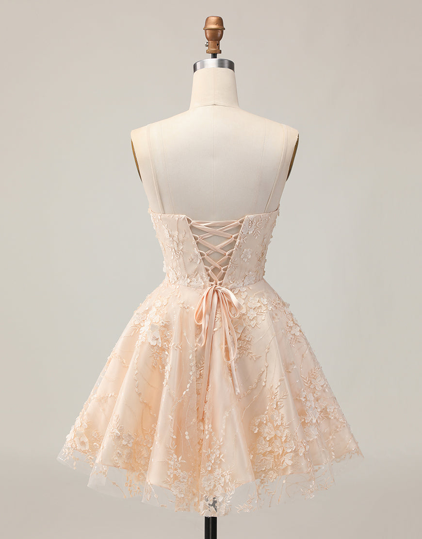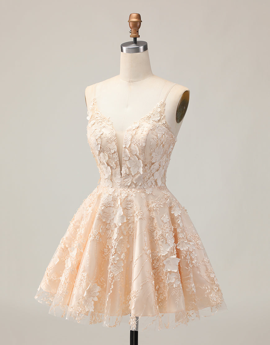 Apricot A-Line Floral Homecoming Dress with Appliques