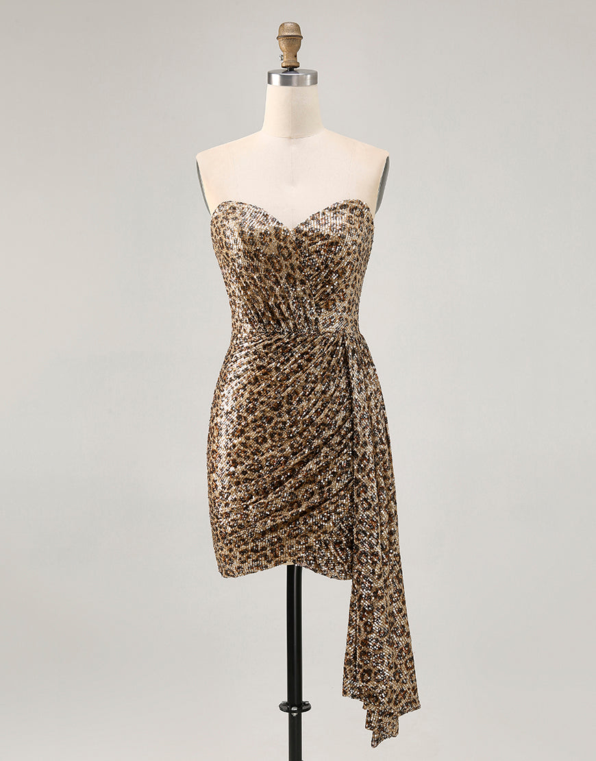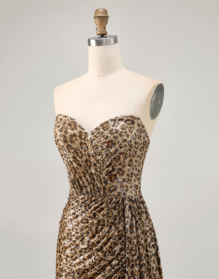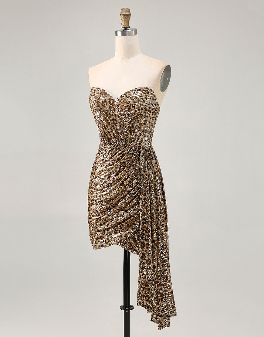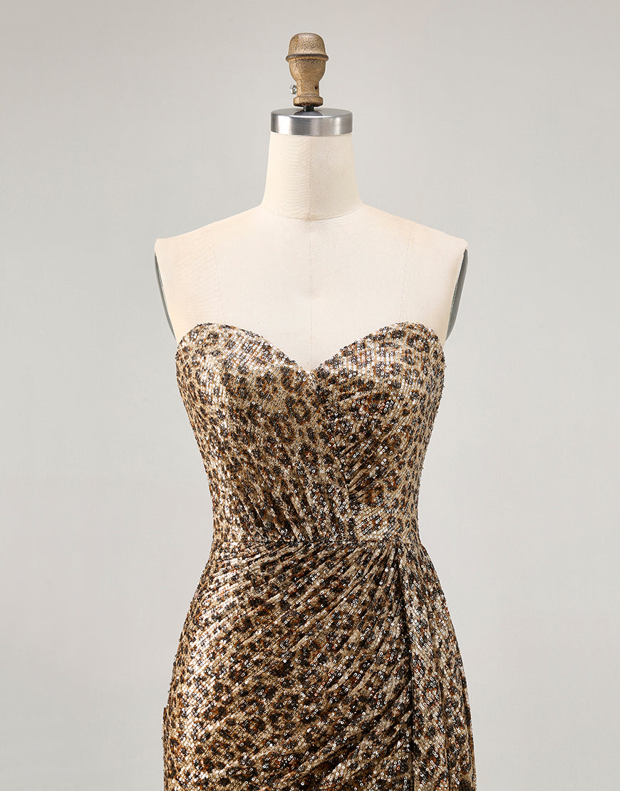 Khaki Leopard Bodycon Strapless Homecoming Dress With Sash