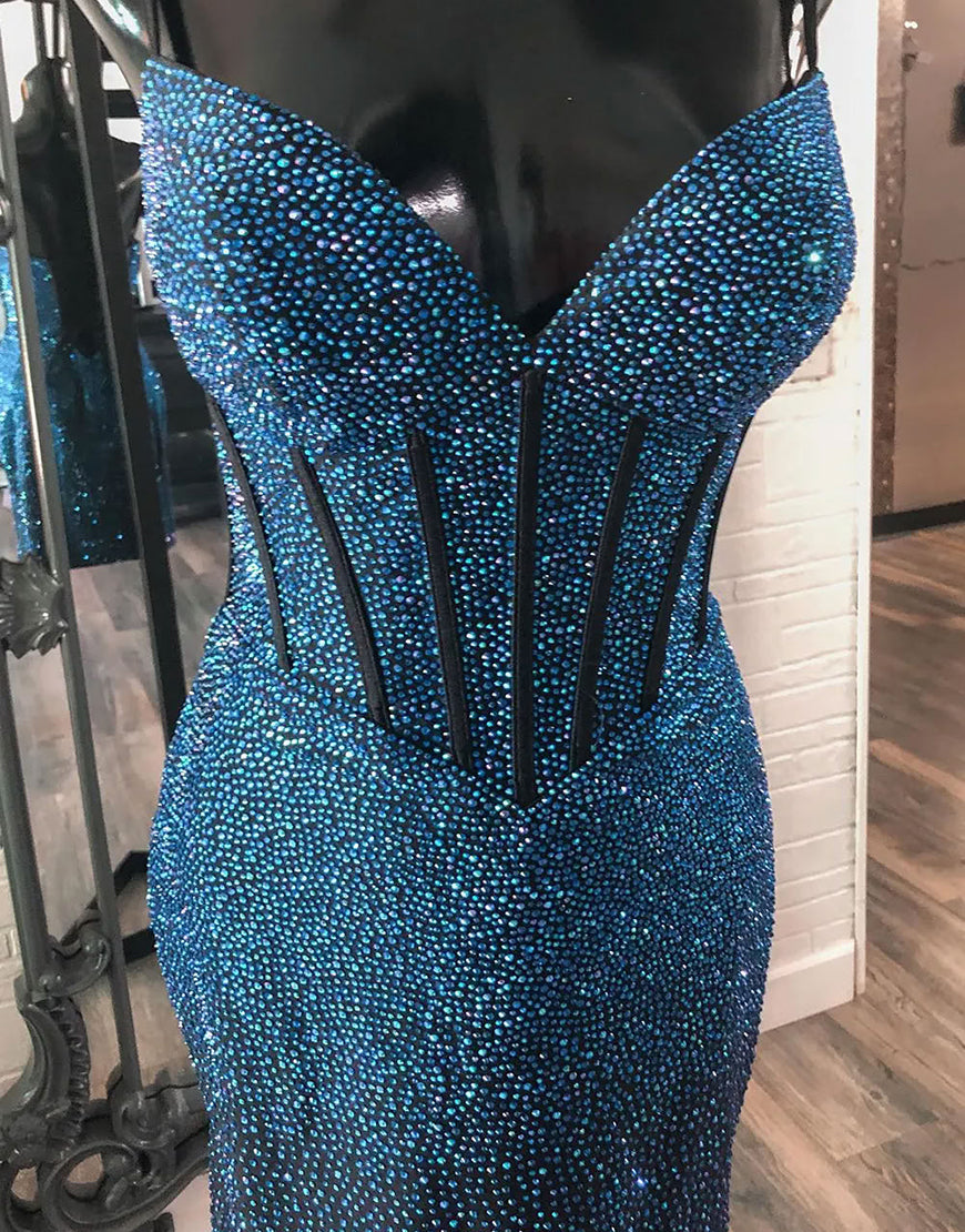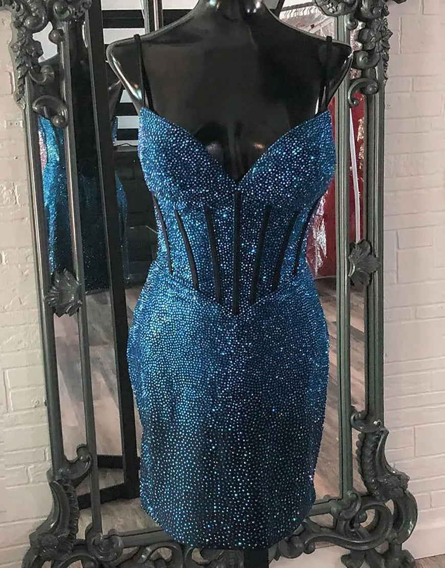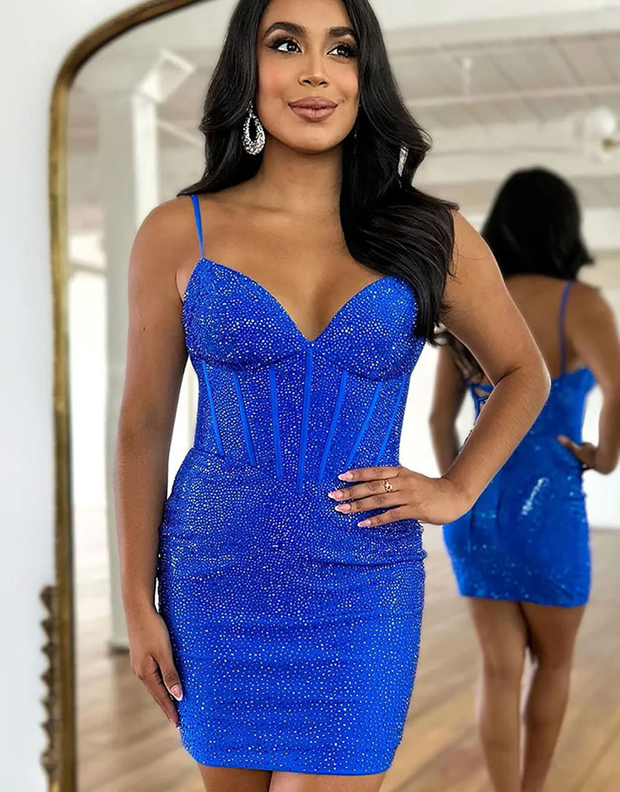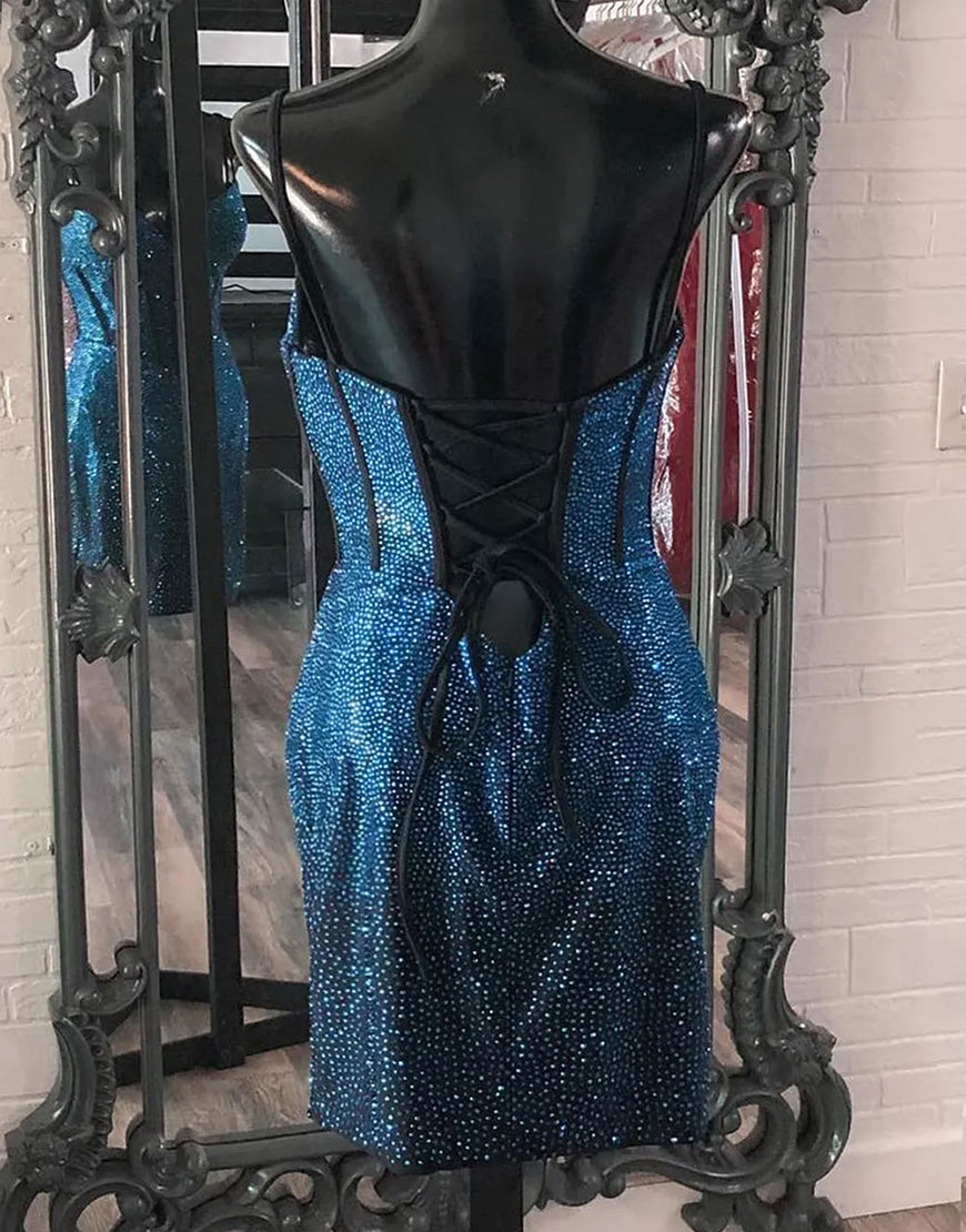 Navy Beaded Corset Lace-Up Back Tight Short Homecoming Dress