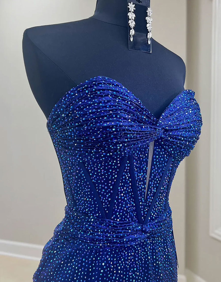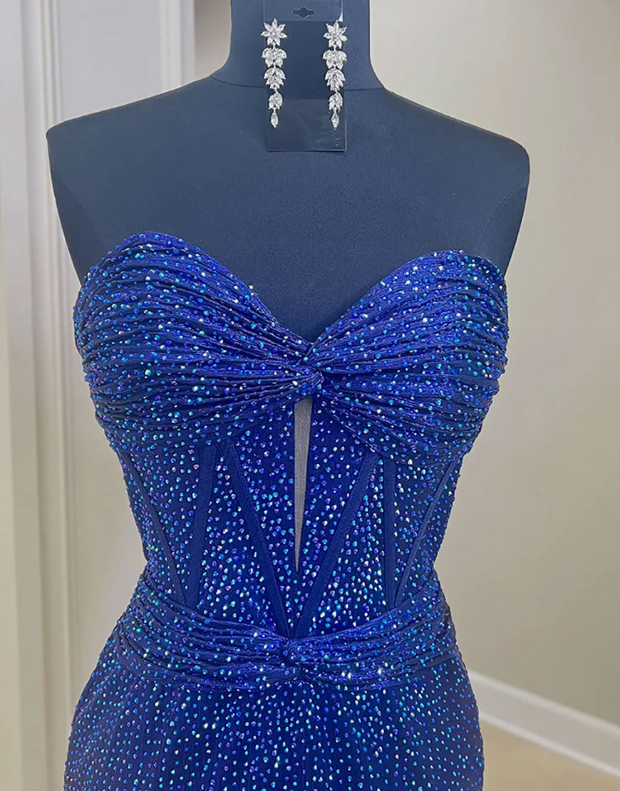Strapless Dark Green Corset Tight Beaded Homecoming Dress