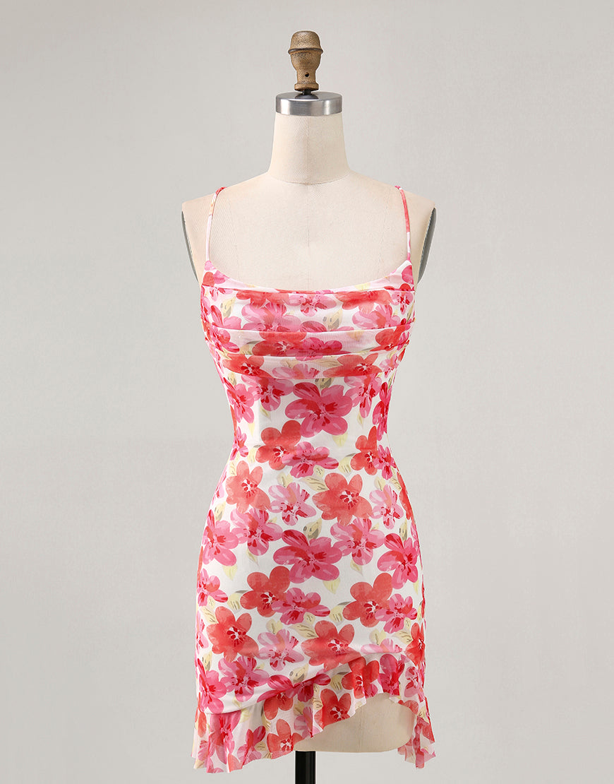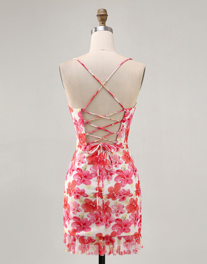 Bodycon Red Flower Homecoming Dress with Ruffles