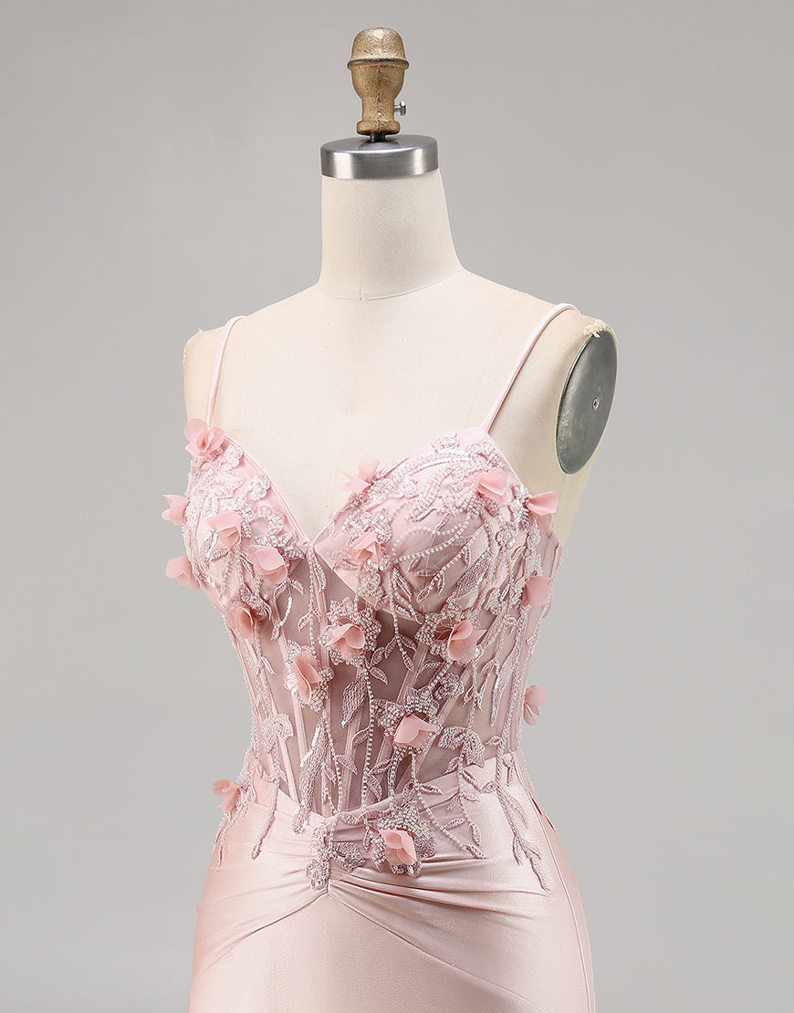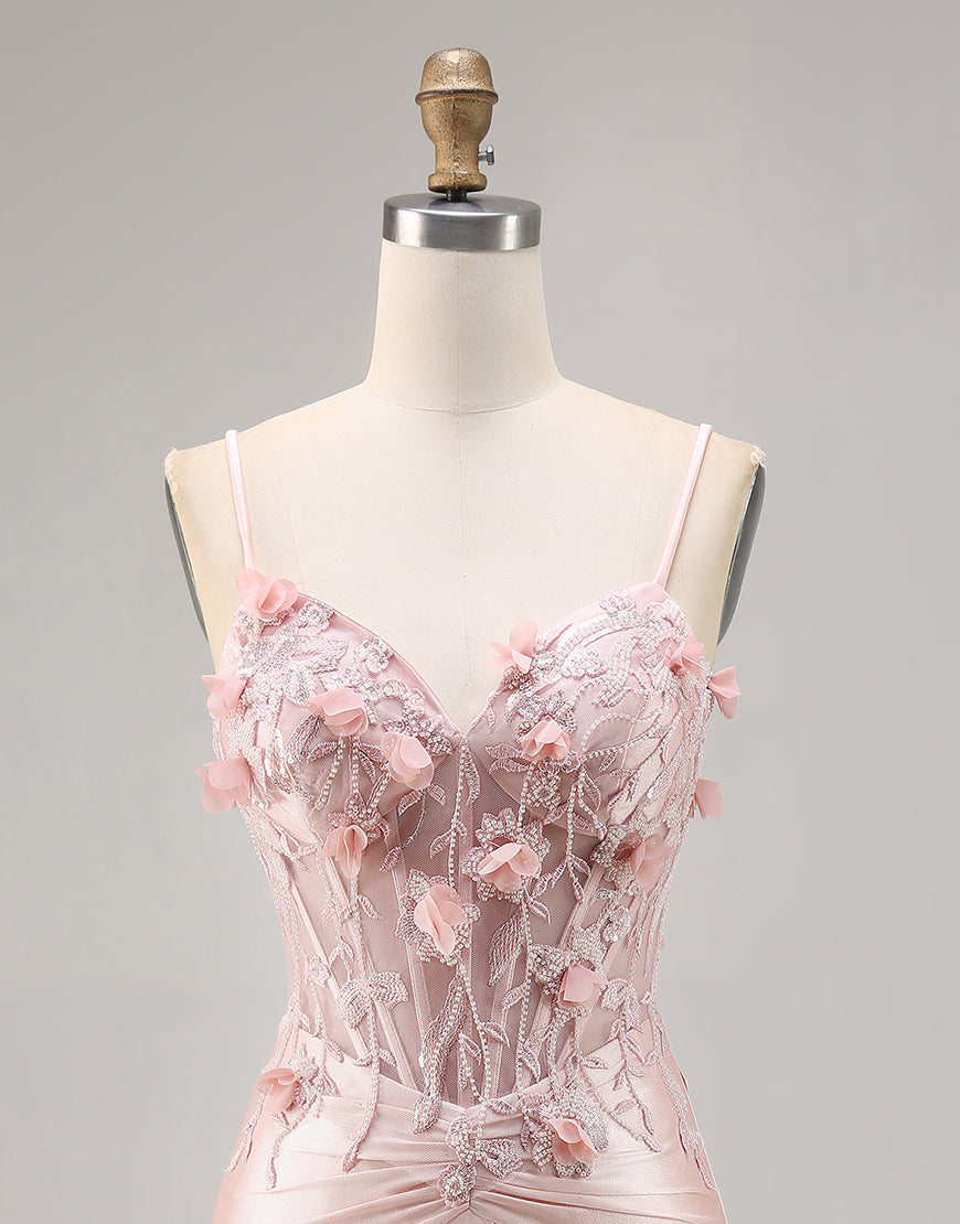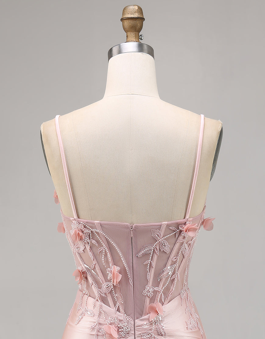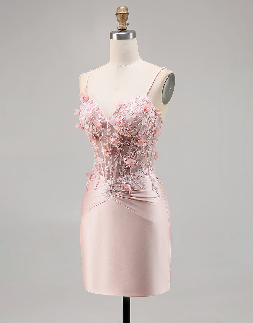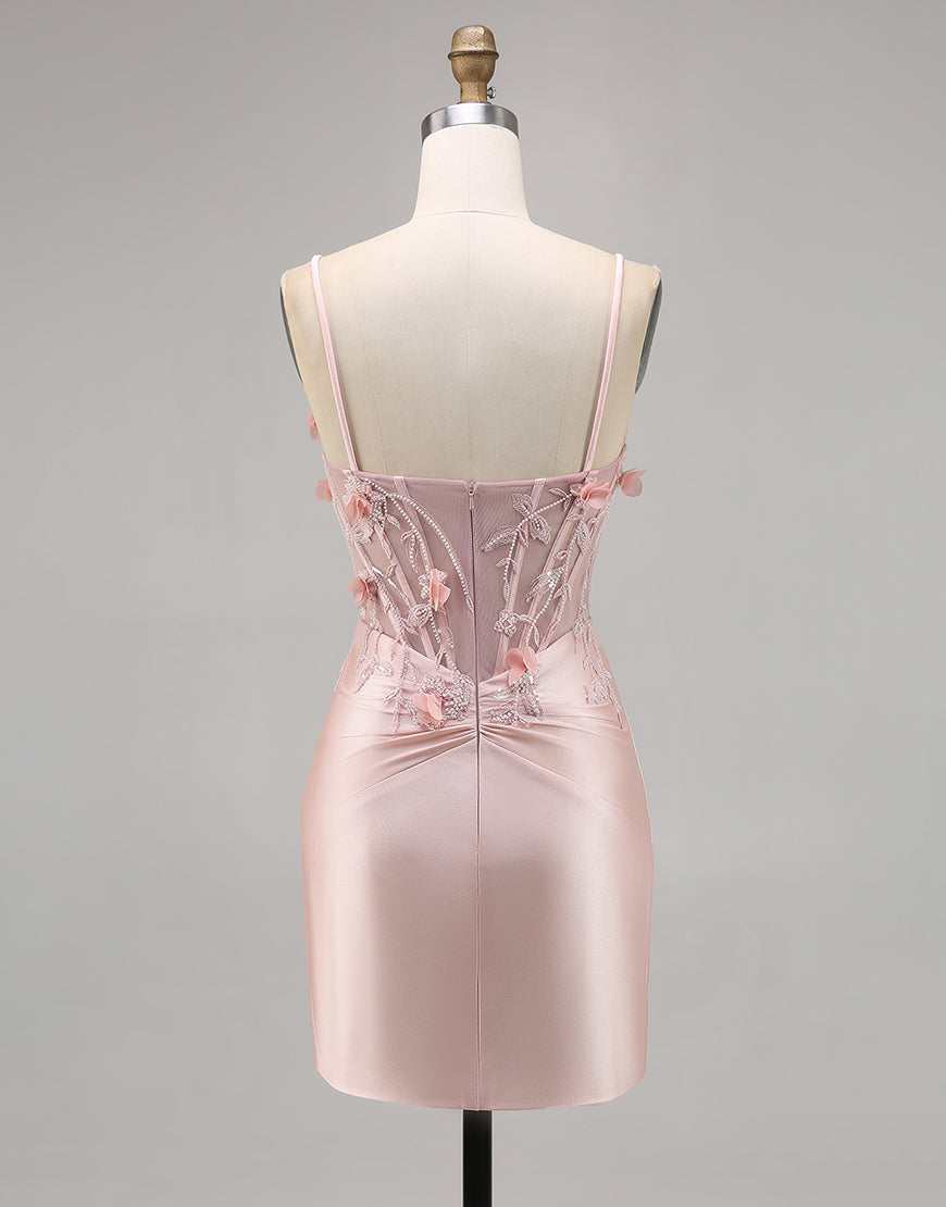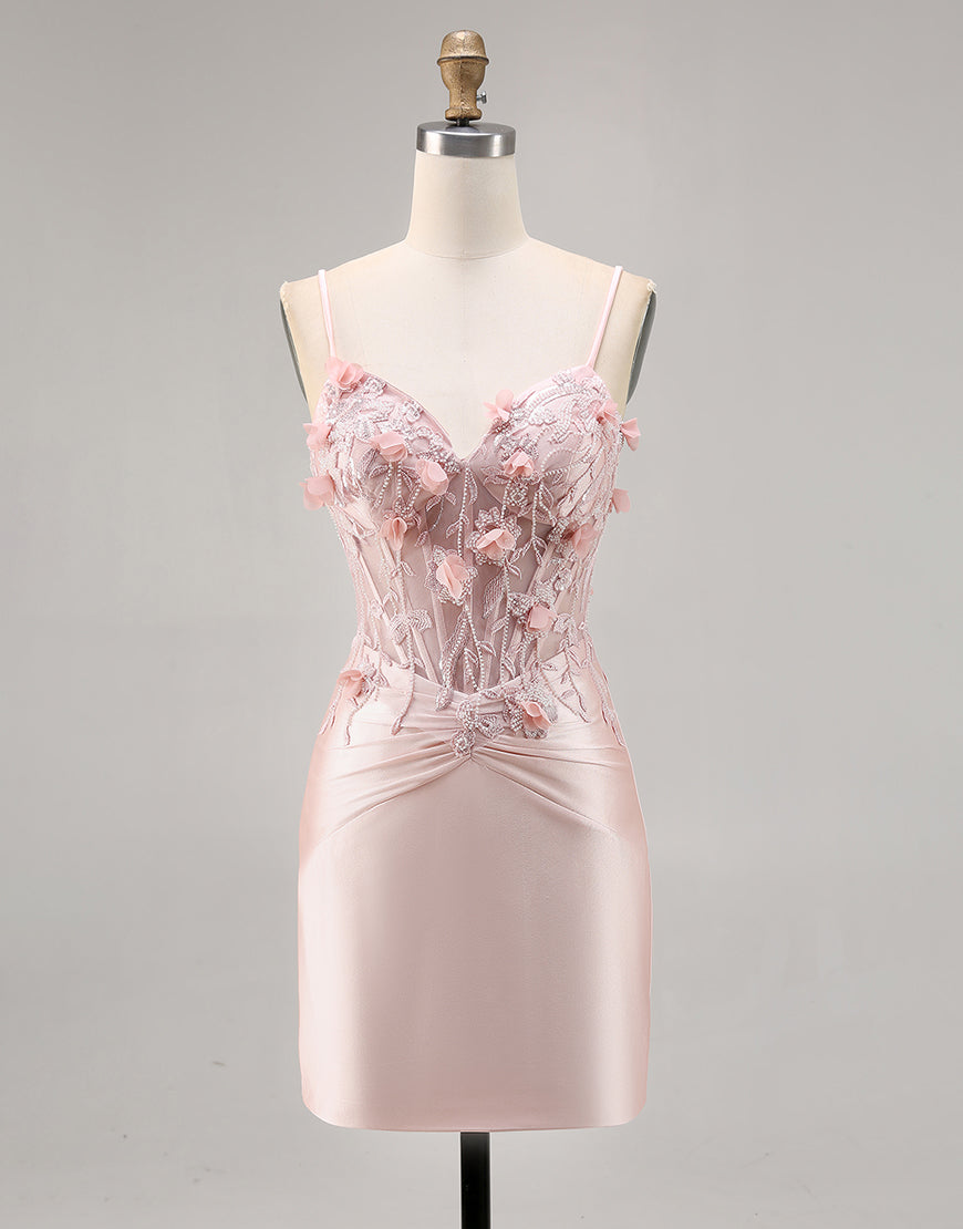 Corset Tight Pink Homecoming Dress with 3D Flowers