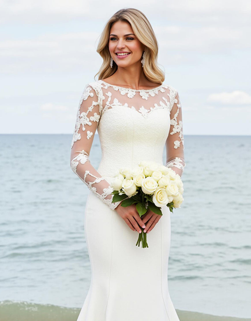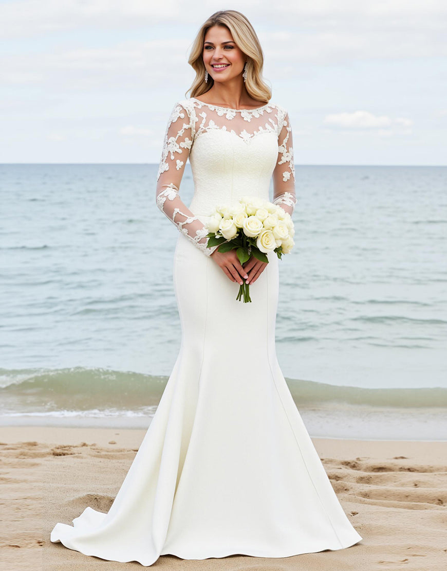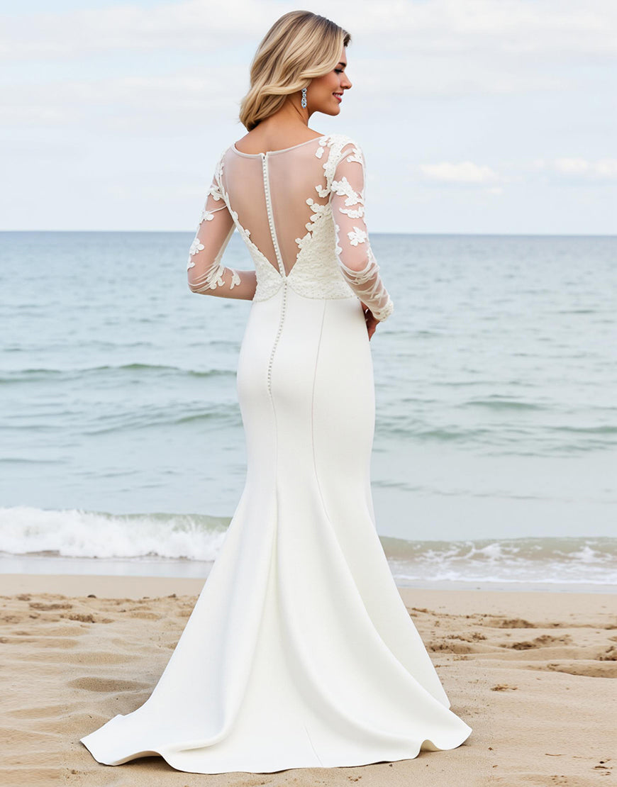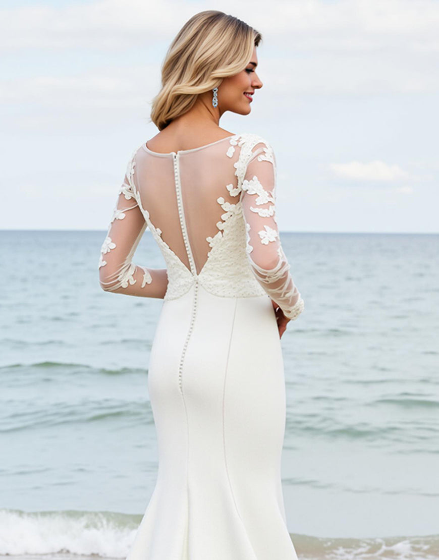 Graceful Ivory Mermaid Lace Illusion Long Sleeve Wedding Dress