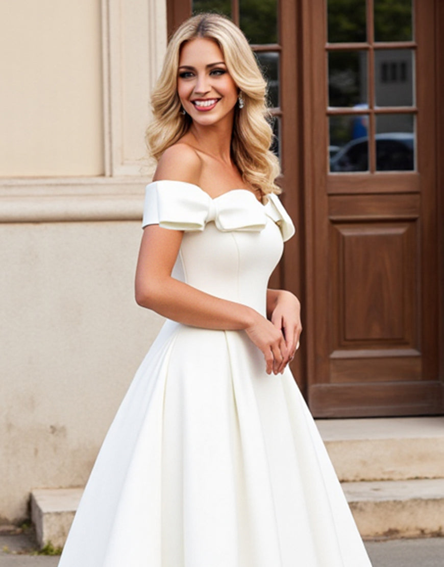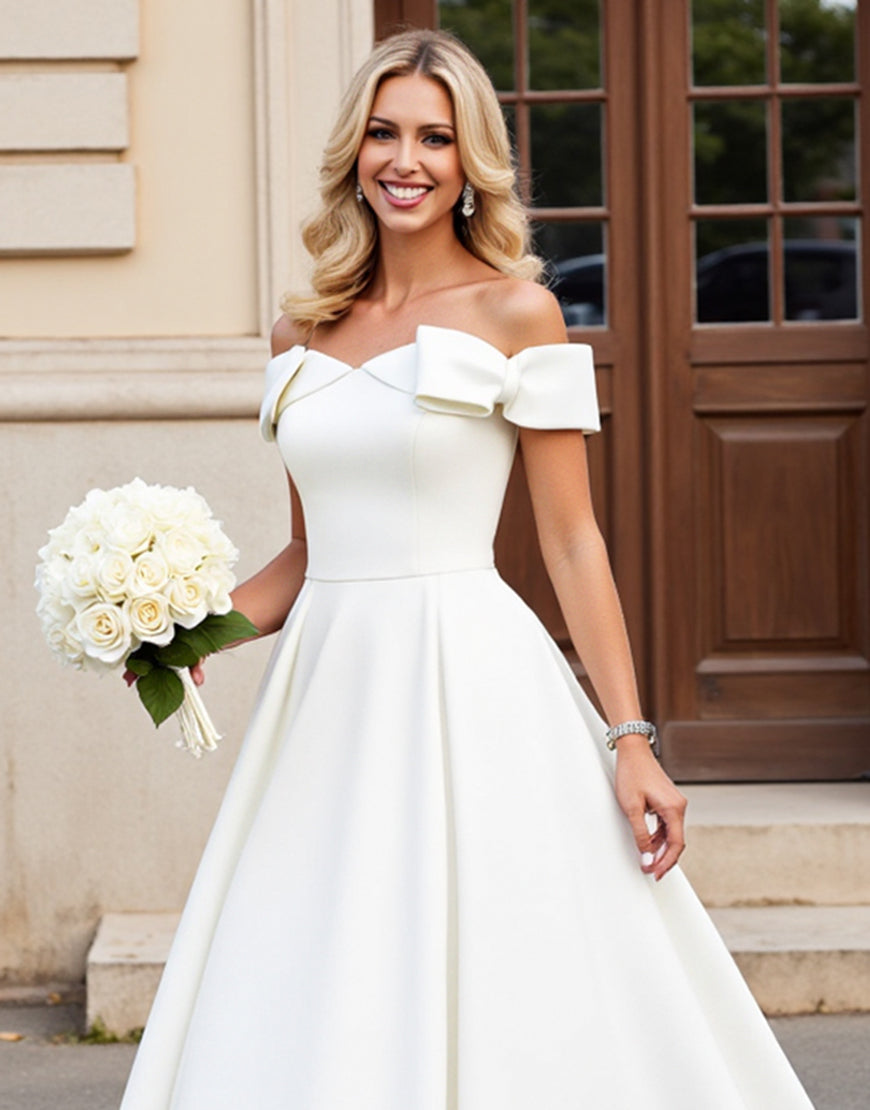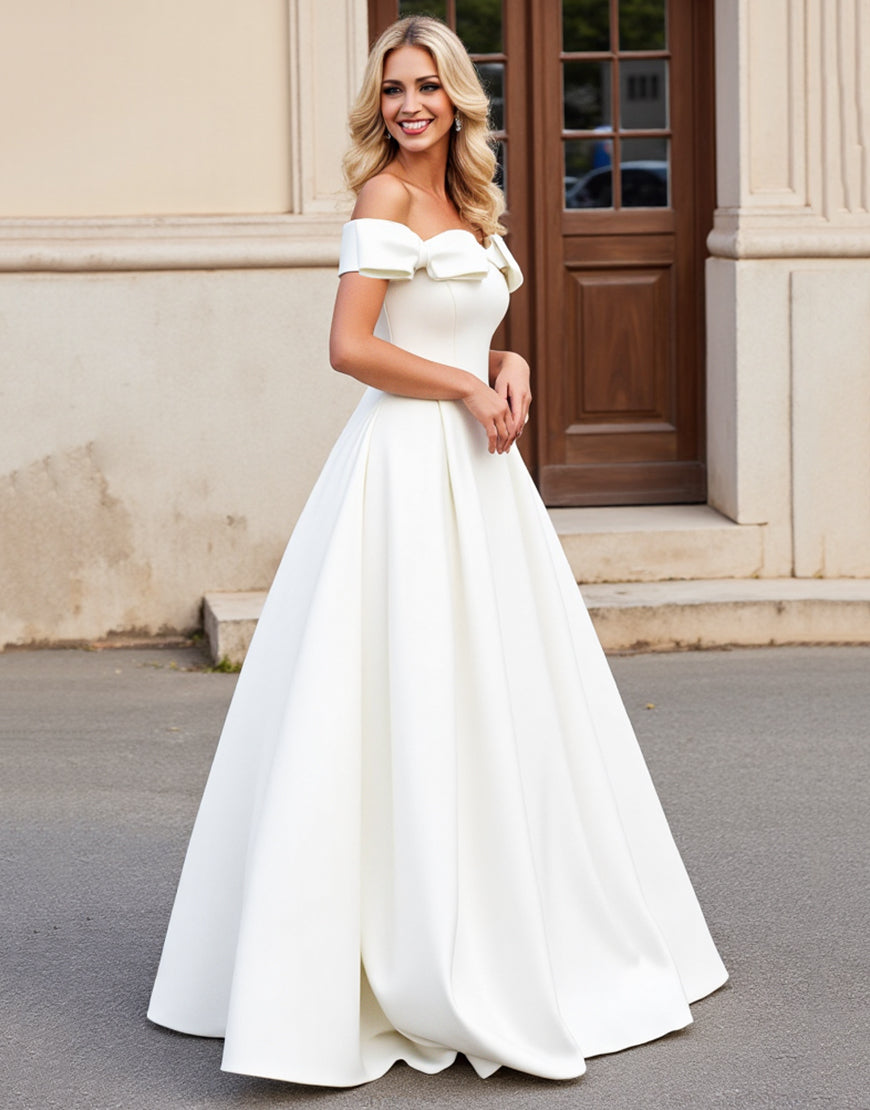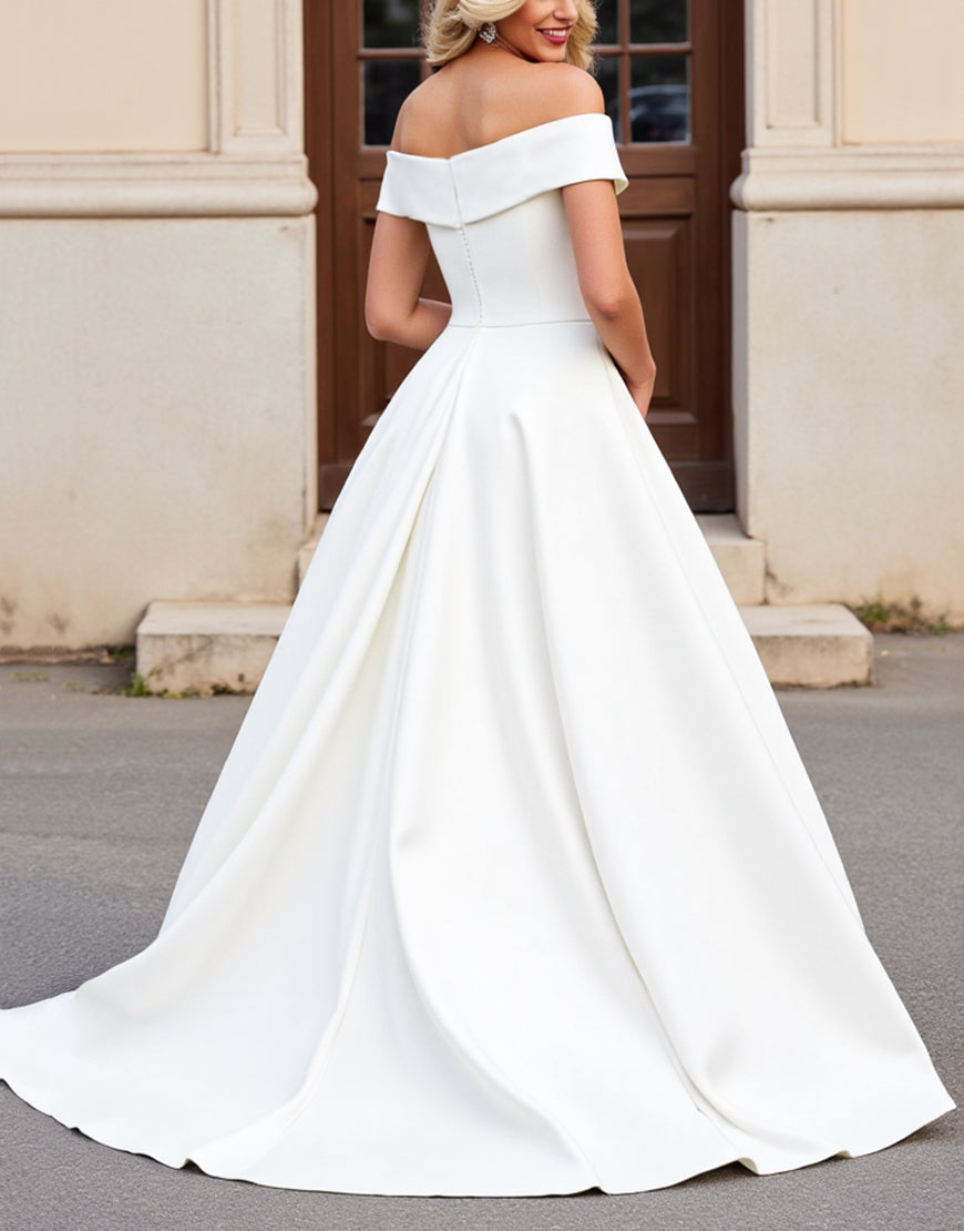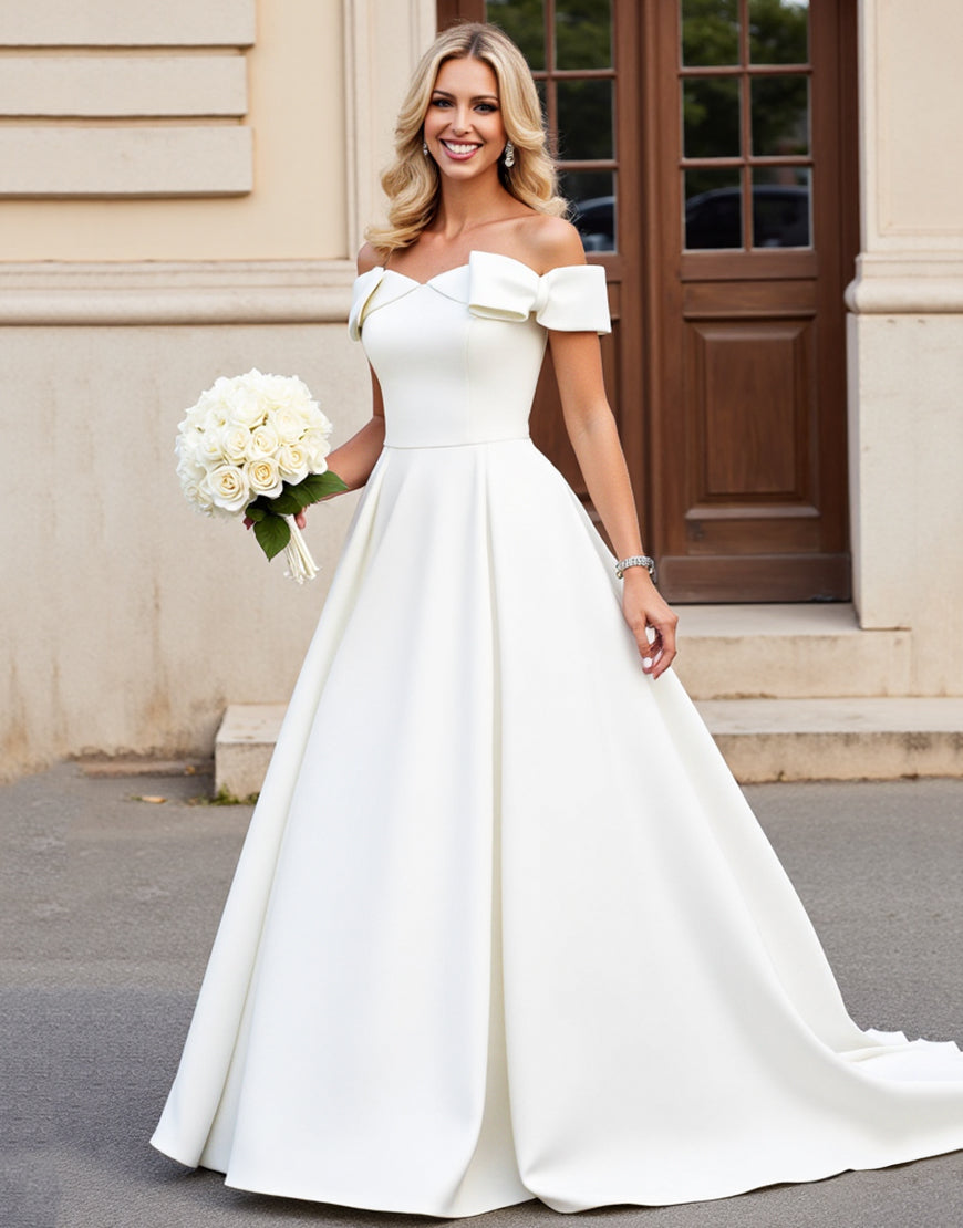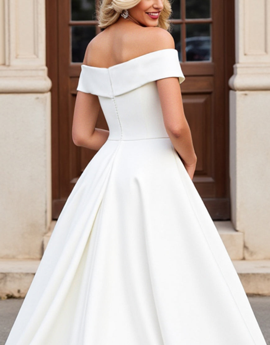 lvory A Line Off The Shoulder Pleated Long Wedding Dress