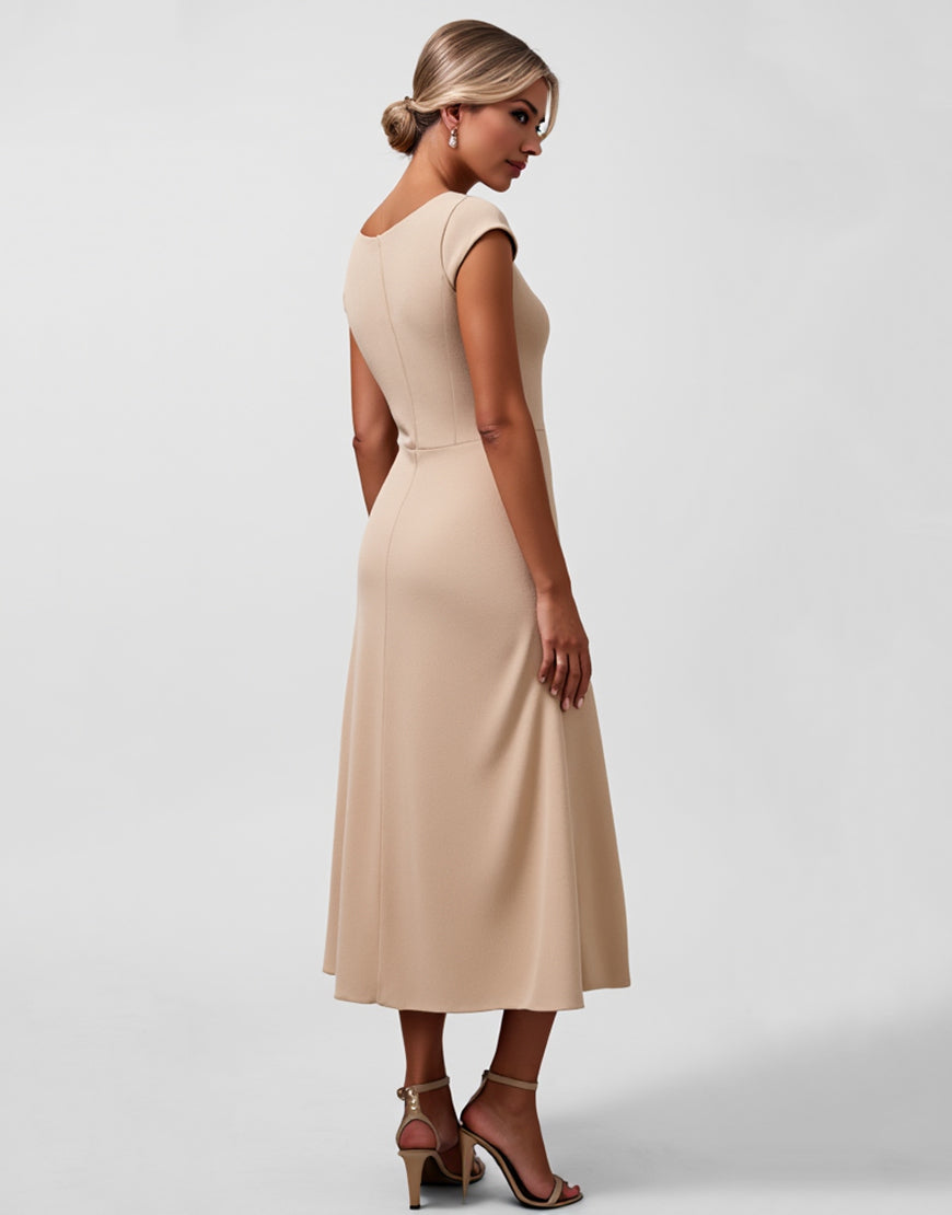Champagne Ruffled Midi A Line Mother Of The Bride Dress